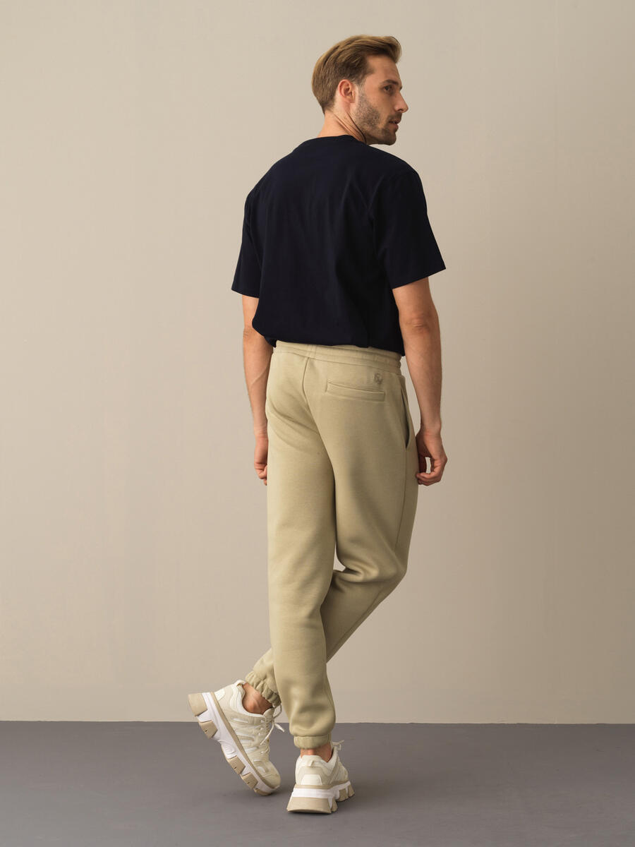 Ecru Cotton Textured Regular Fit Sweat Trousers