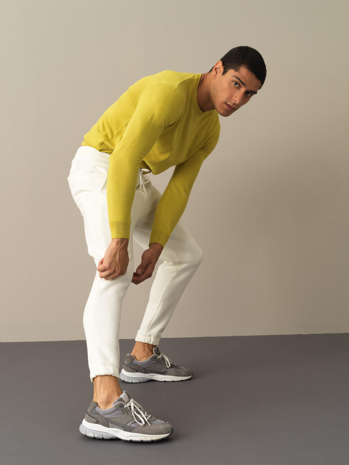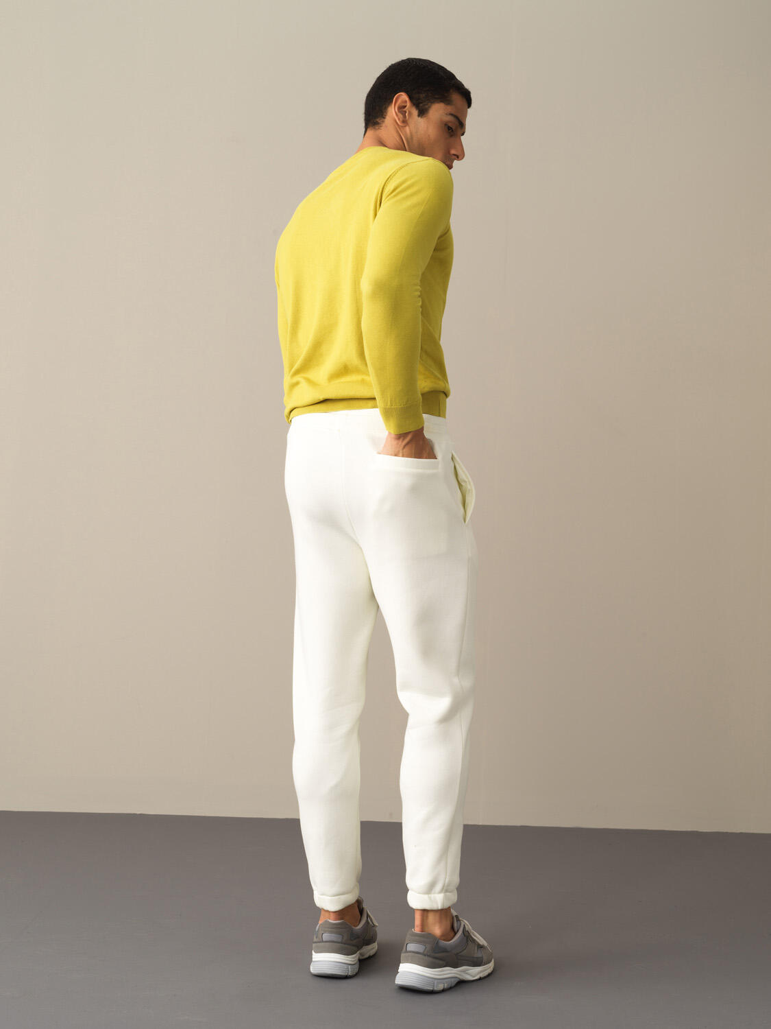 Ecru Cotton Textured Regular Fit Sweat Trousers