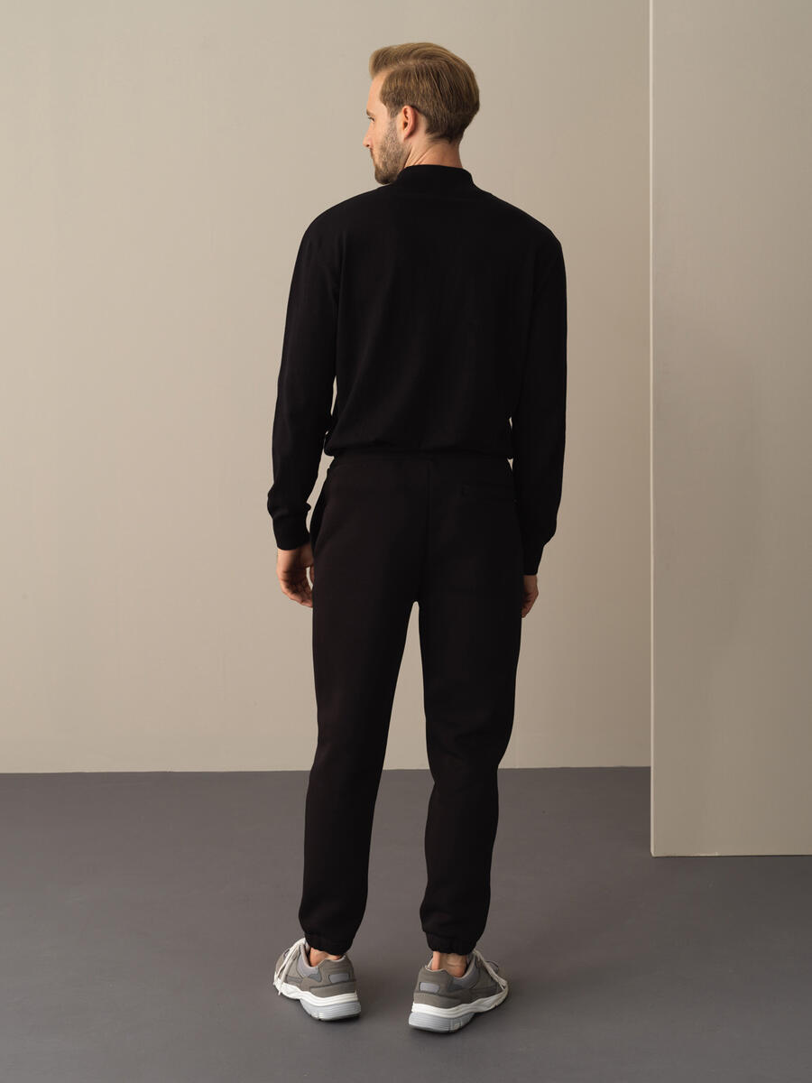 Black Cotton Textured Regular Fit Sweat Pants - Xint