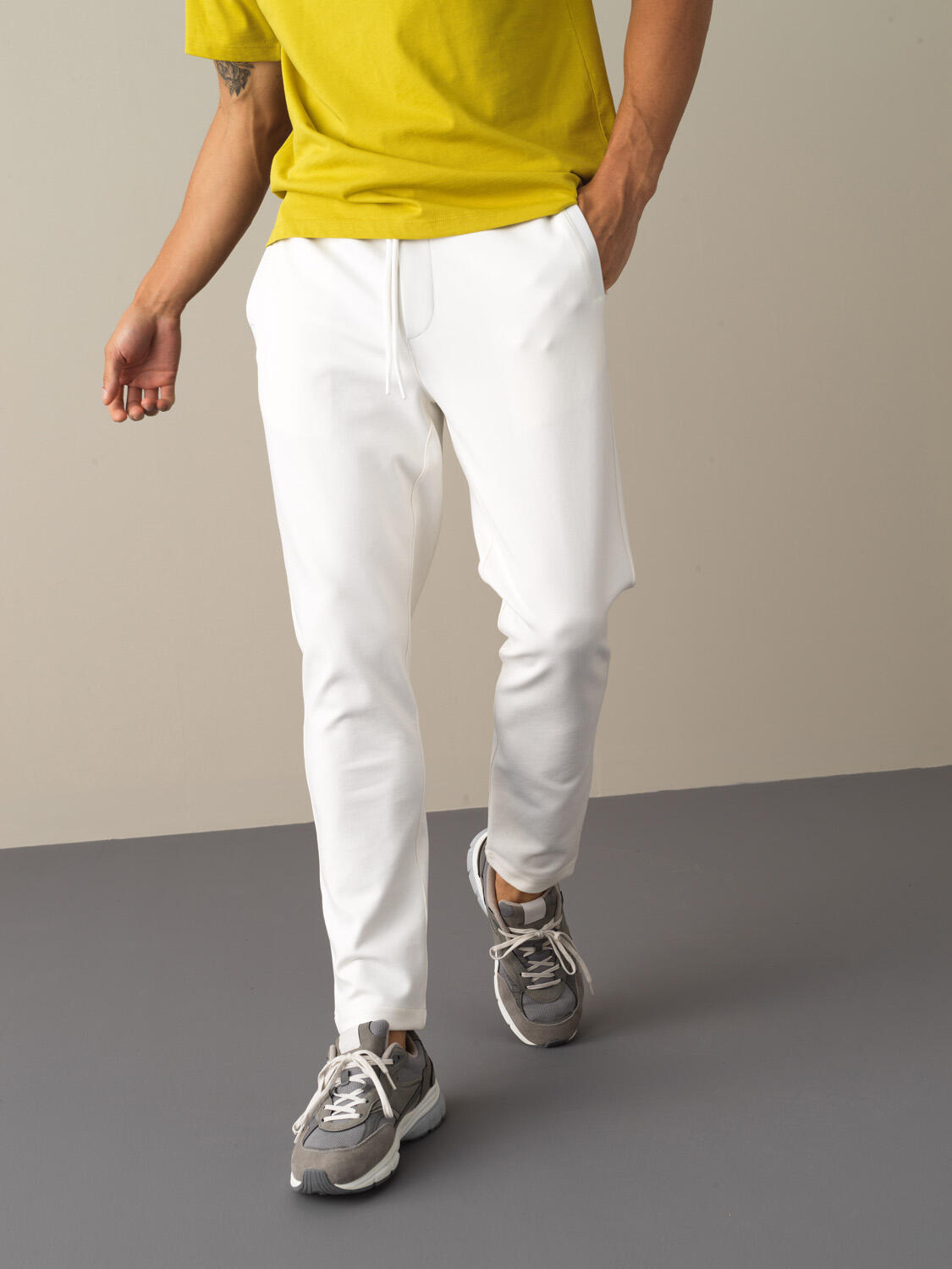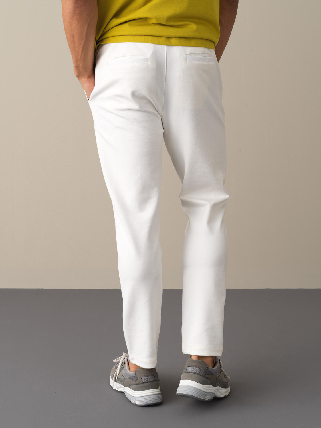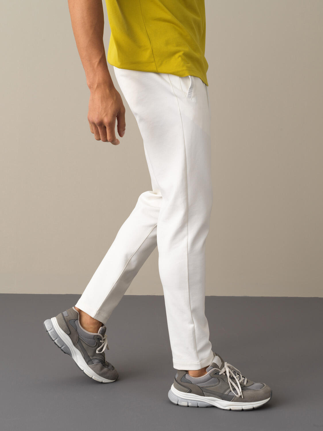 Ecru Cotton Textured Slim Fit Sweat Trousers - Xint