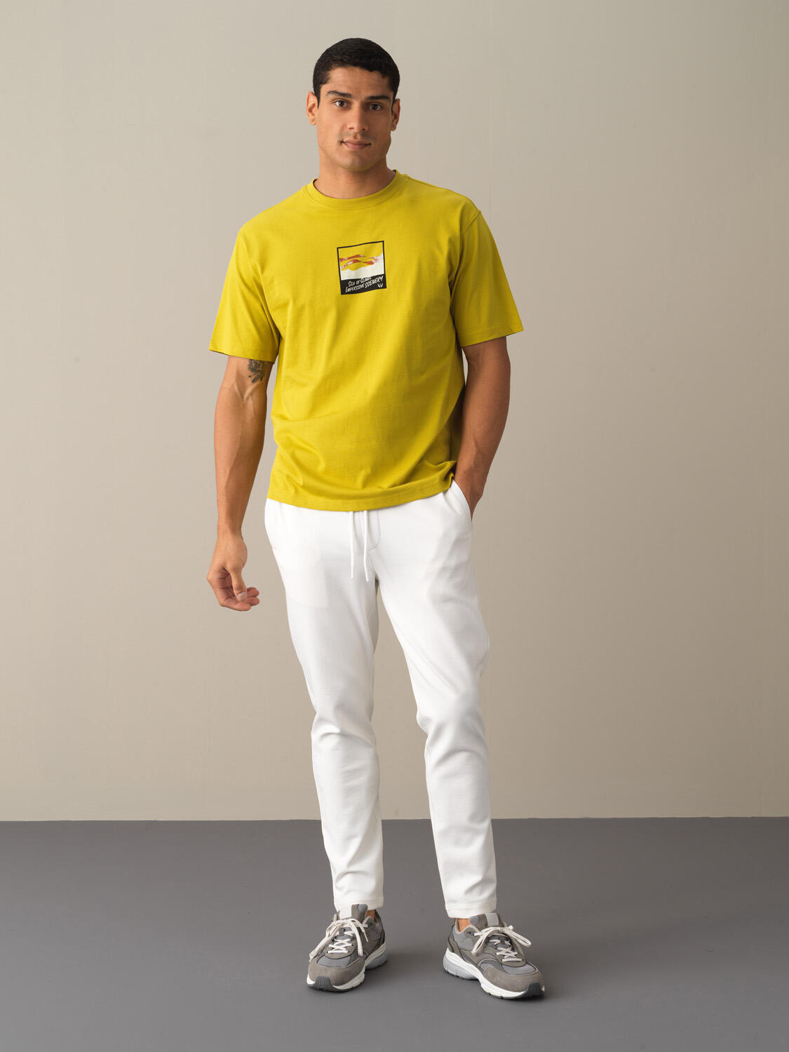 Ecru Cotton Textured Regular Fit Sweat Trousers