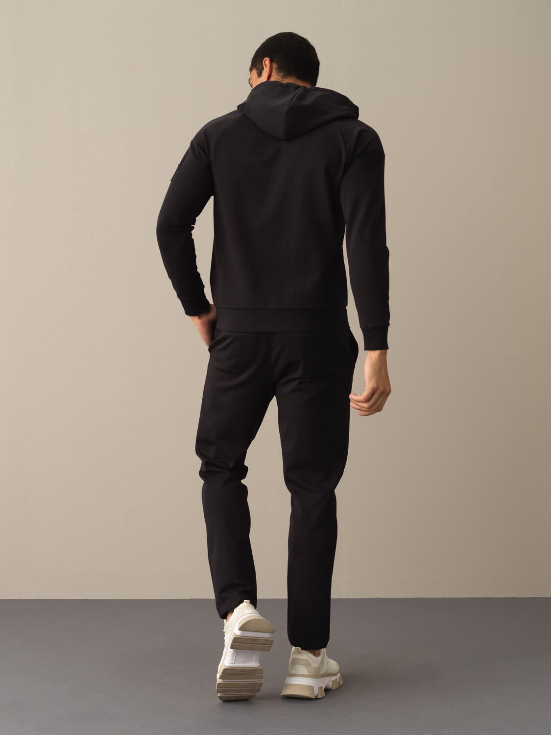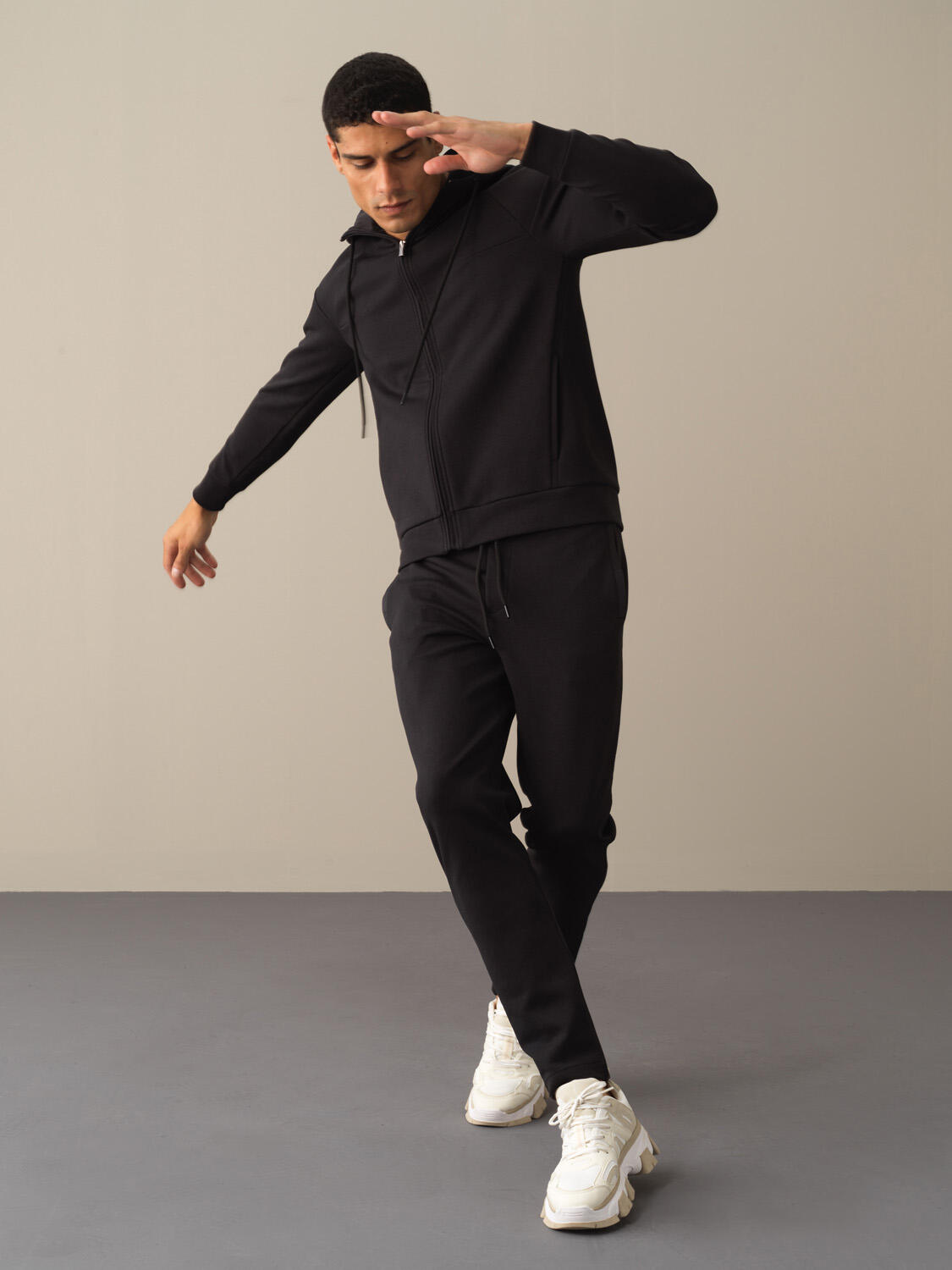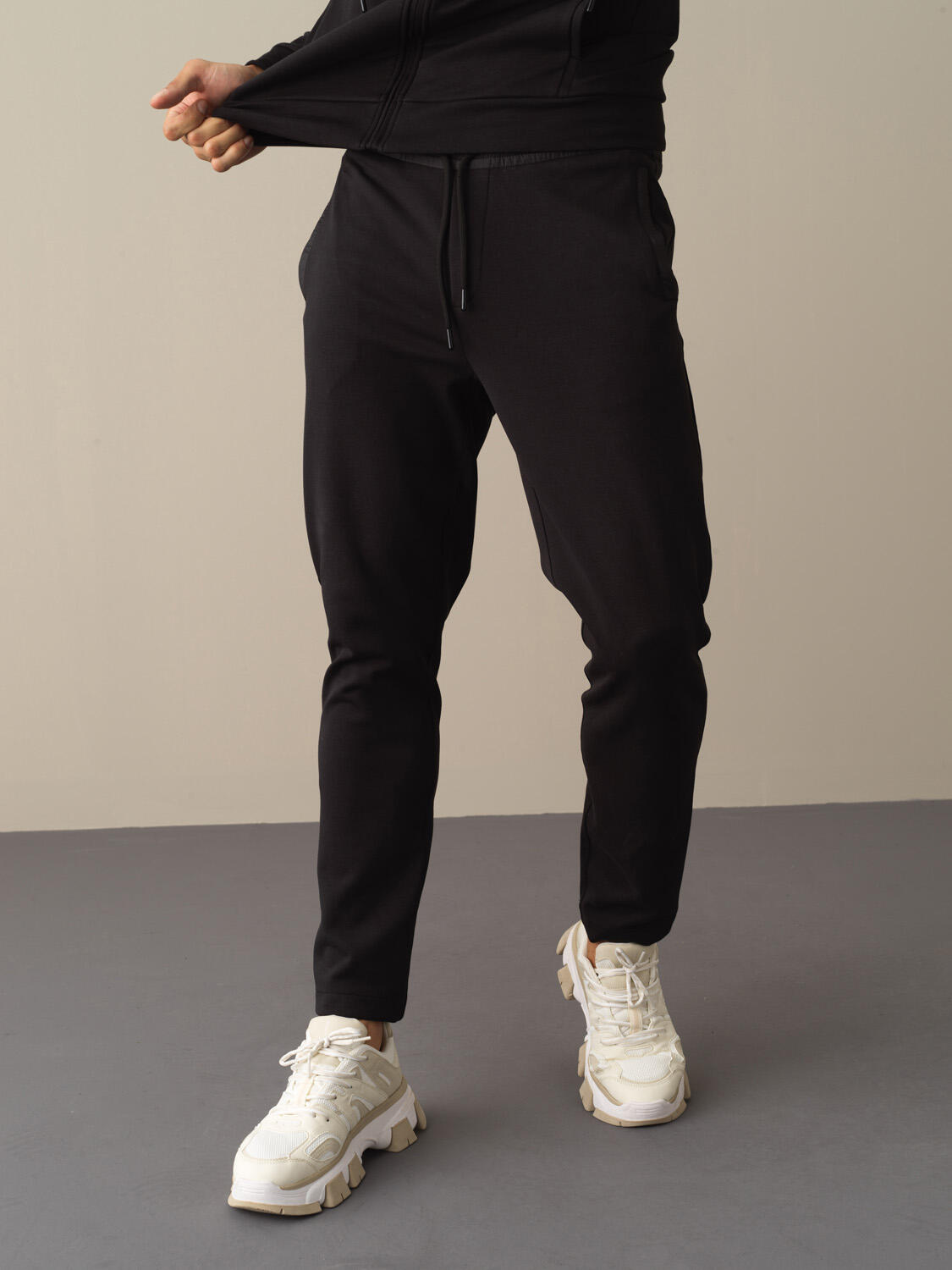 Black Cotton Textured Regular Fit Sweat Pants - Xint
