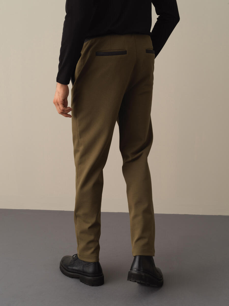 Beige Luxury Textured Soft Velvet Slim Fit Sweat Trousers - Xint