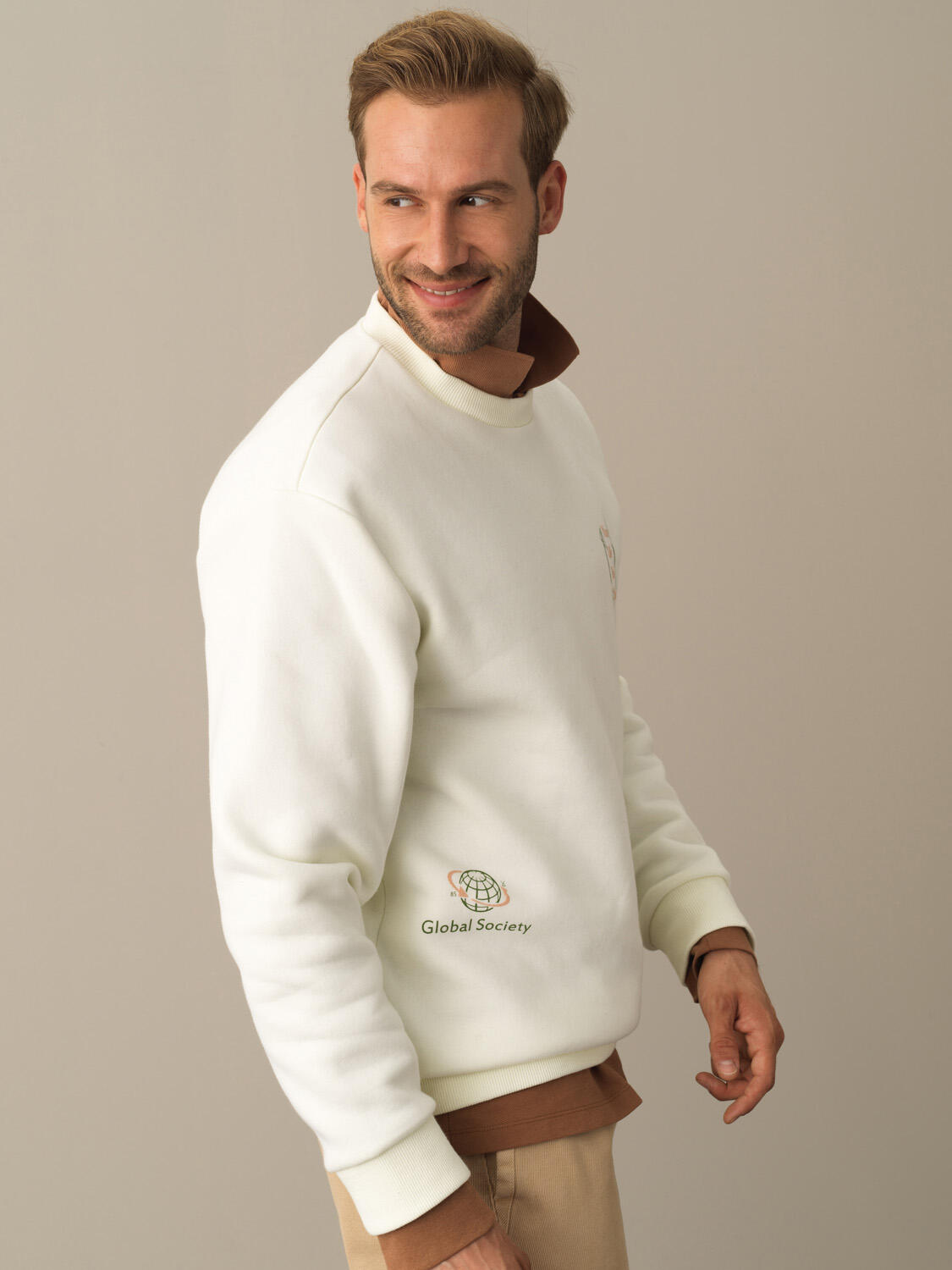 Ecru Soft Fleece Surface Slim Fit Sweatshirt - Xint
