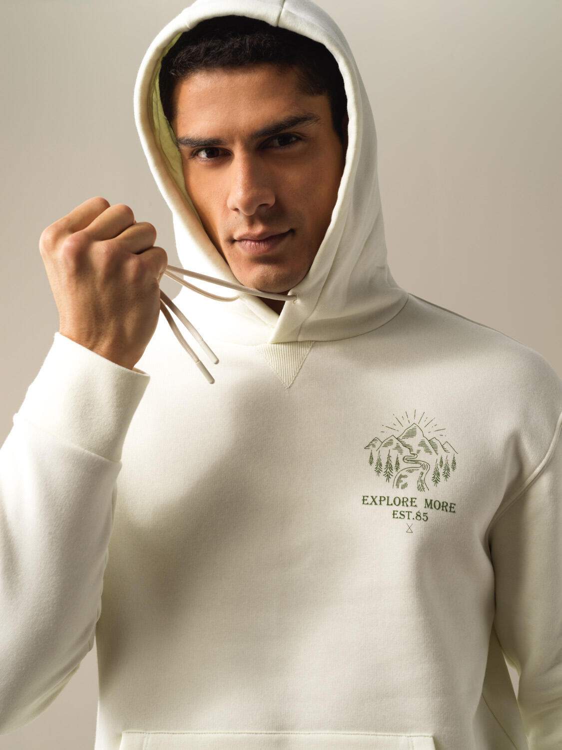 Ecru Cotton Textured Regular Fit Sweatshirt - Xint