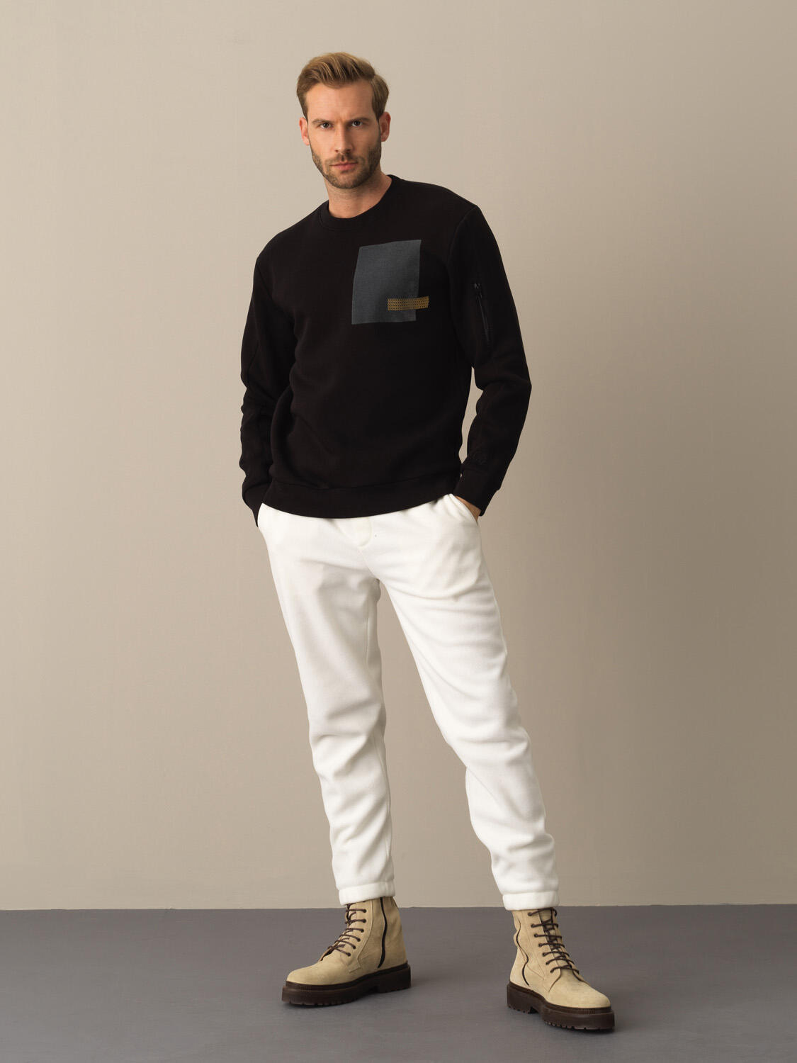 Ecru Soft Fleece Surface Slim Fit Sweatshirt - Xint