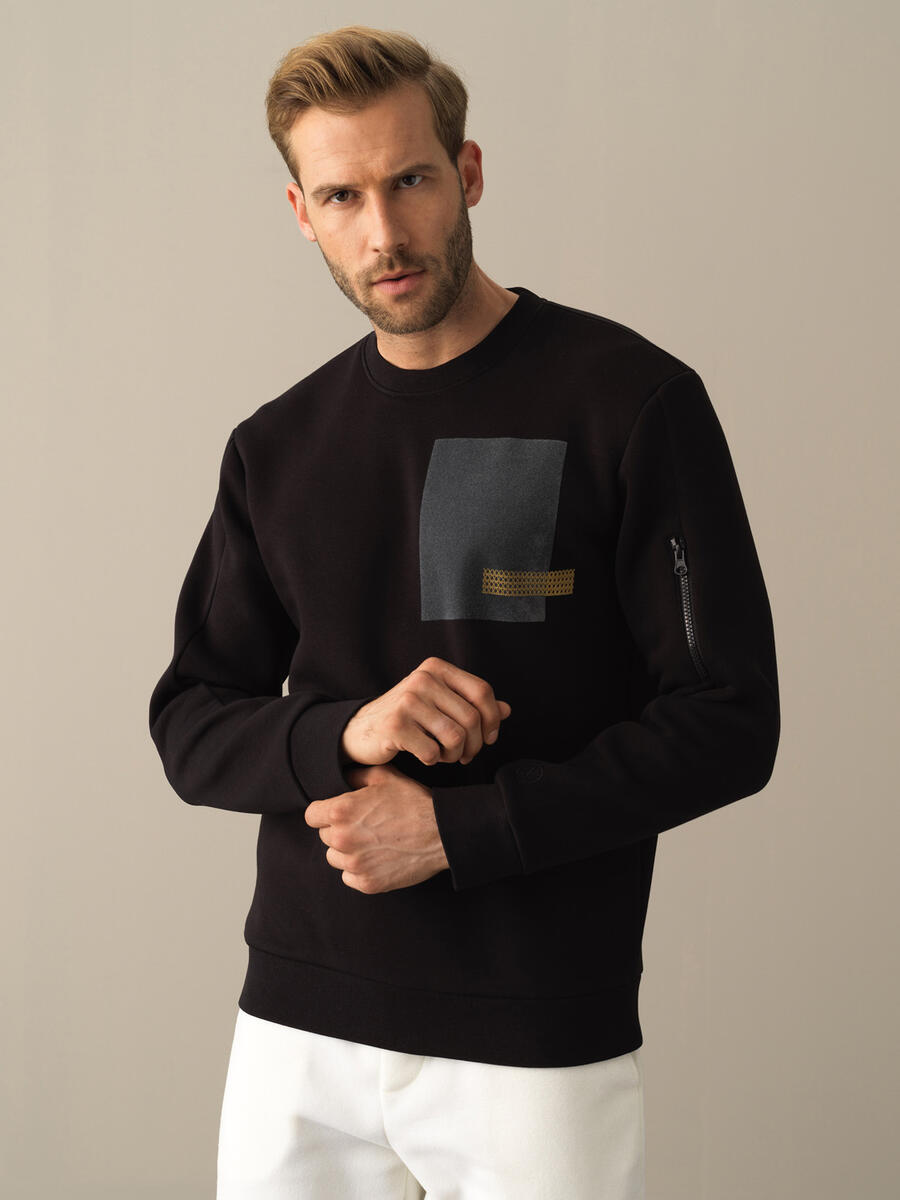 Navy Blue Flexible Textured Regular Fit Sweatshirt - Xint