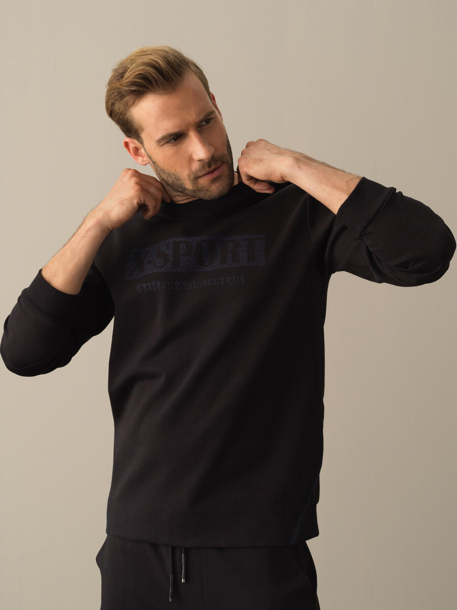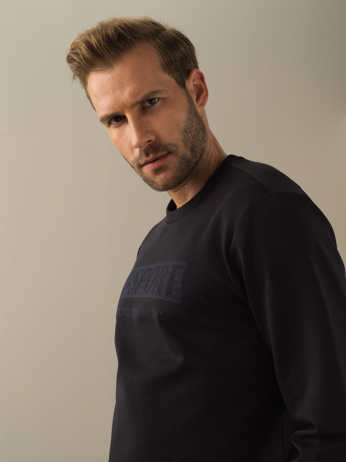 Navy Blue Flexible Textured Regular Fit Sweatshirt - Xint