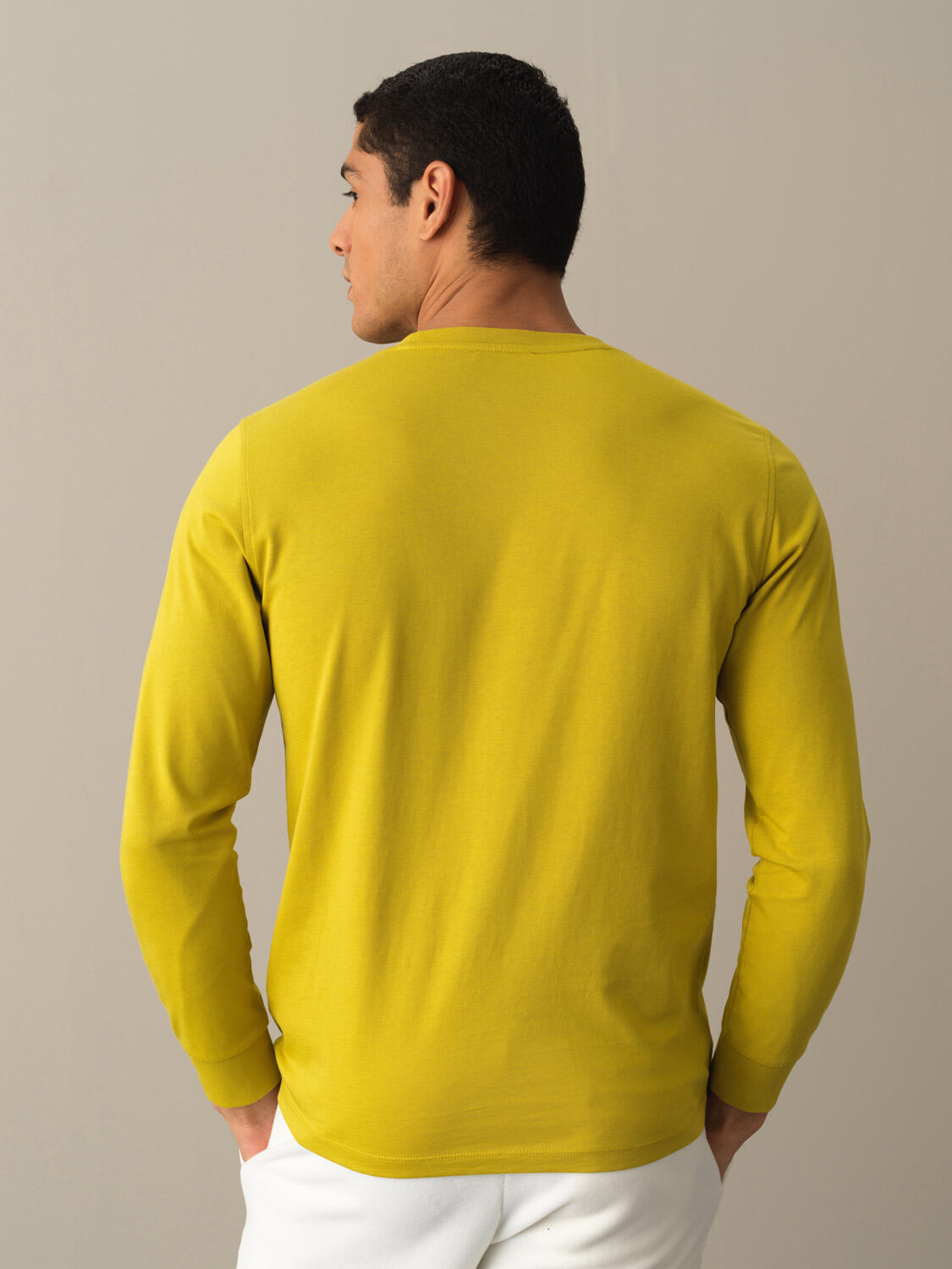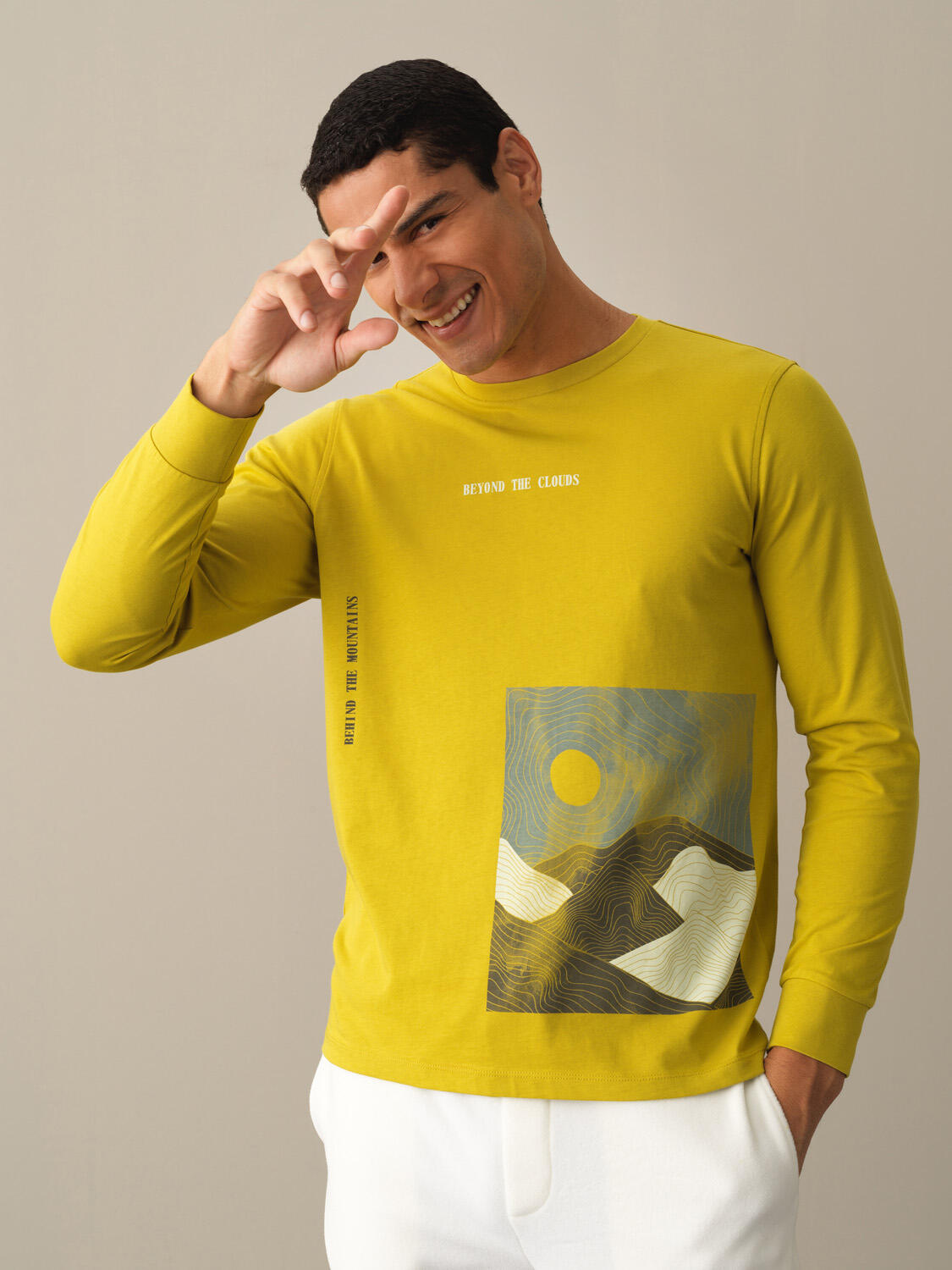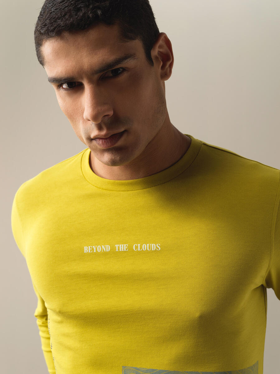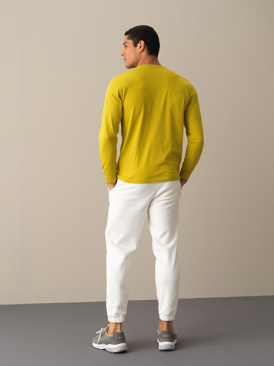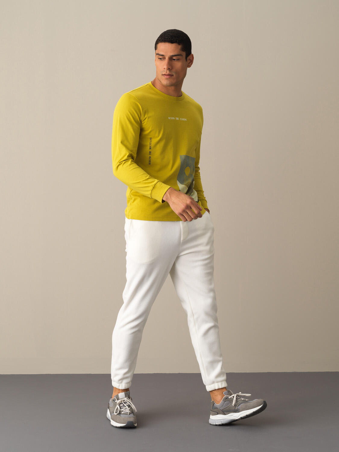Ecru Cotton Textured Regular Fit Long Sleeve T-Shirt - Xint
