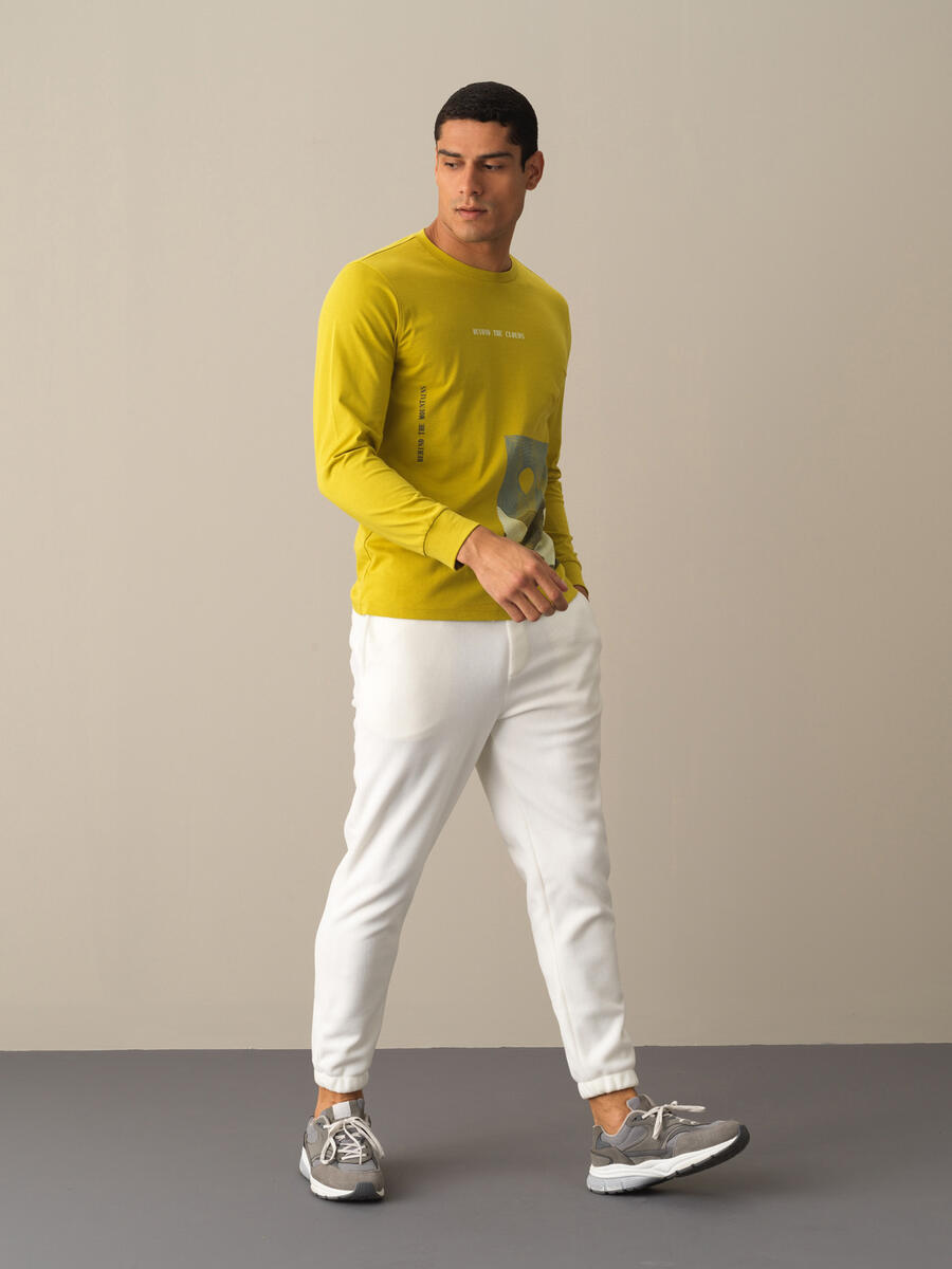 Ecru Flexible Textured Regular Fit Long Sleeve T-Shirt - Xint