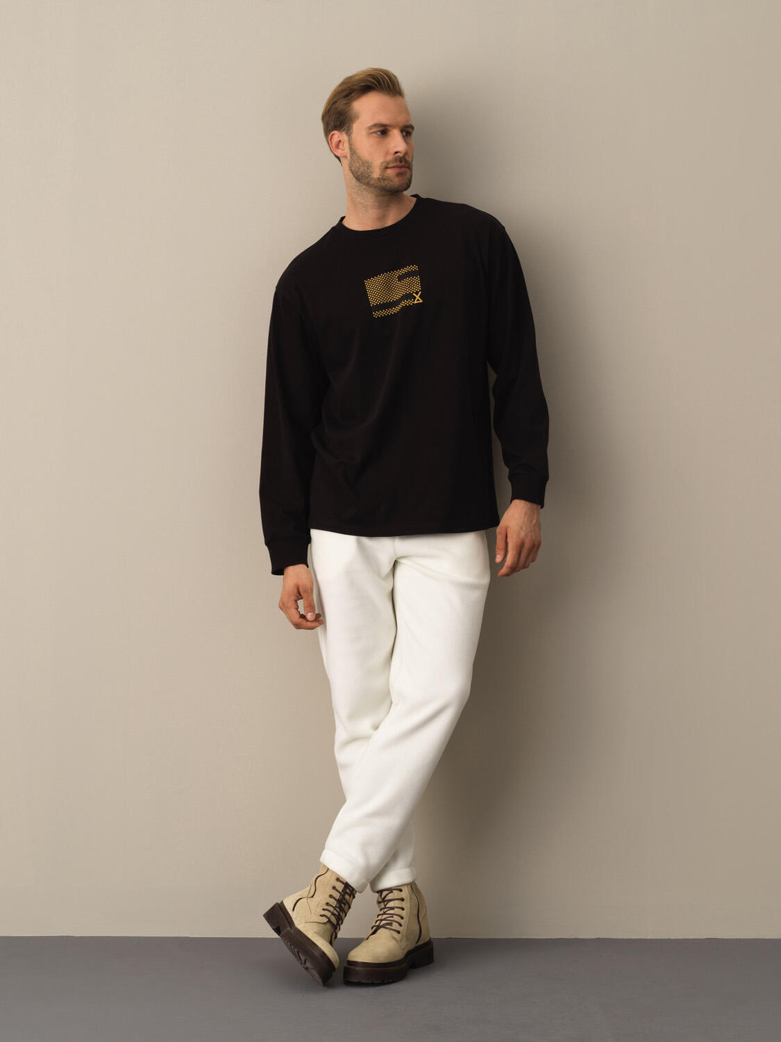 Black Modal Textured Slim Fit Long Sleeve T-Shirt - Xint