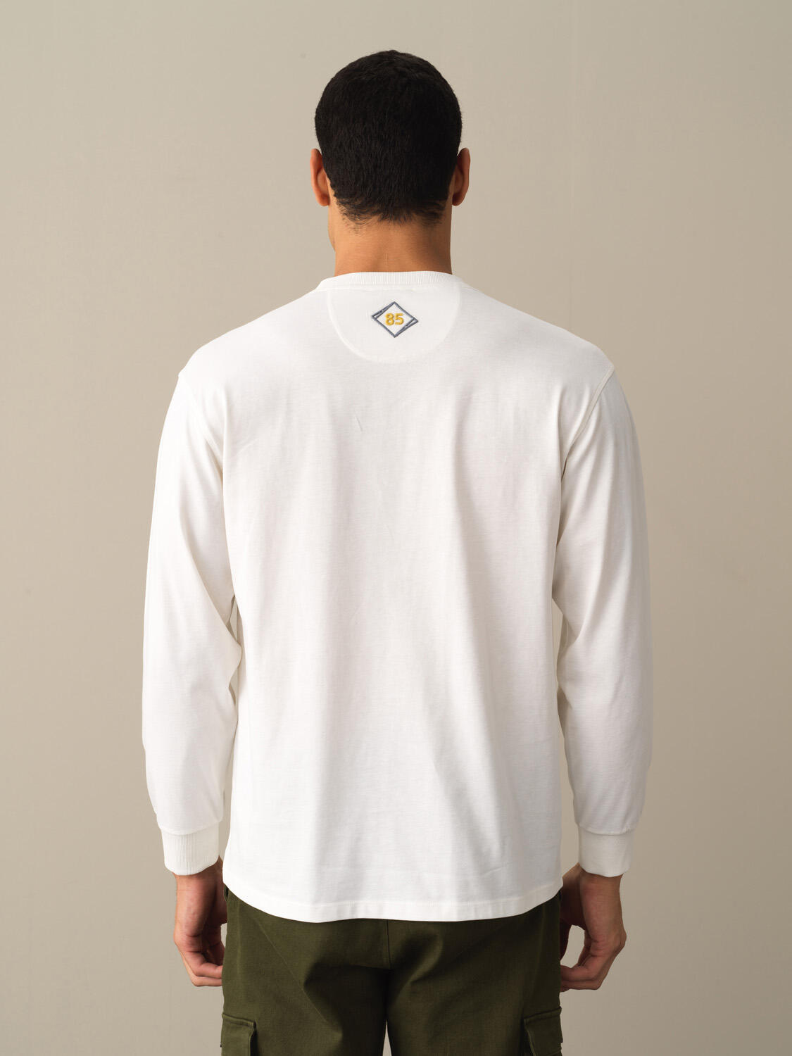 Ecru Cotton Textured Regular Fit Long Sleeve T-Shirt - Xint