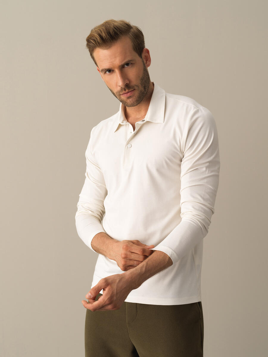 White Modal Textured Slim Fit Long Sleeve T-Shirt - Xint