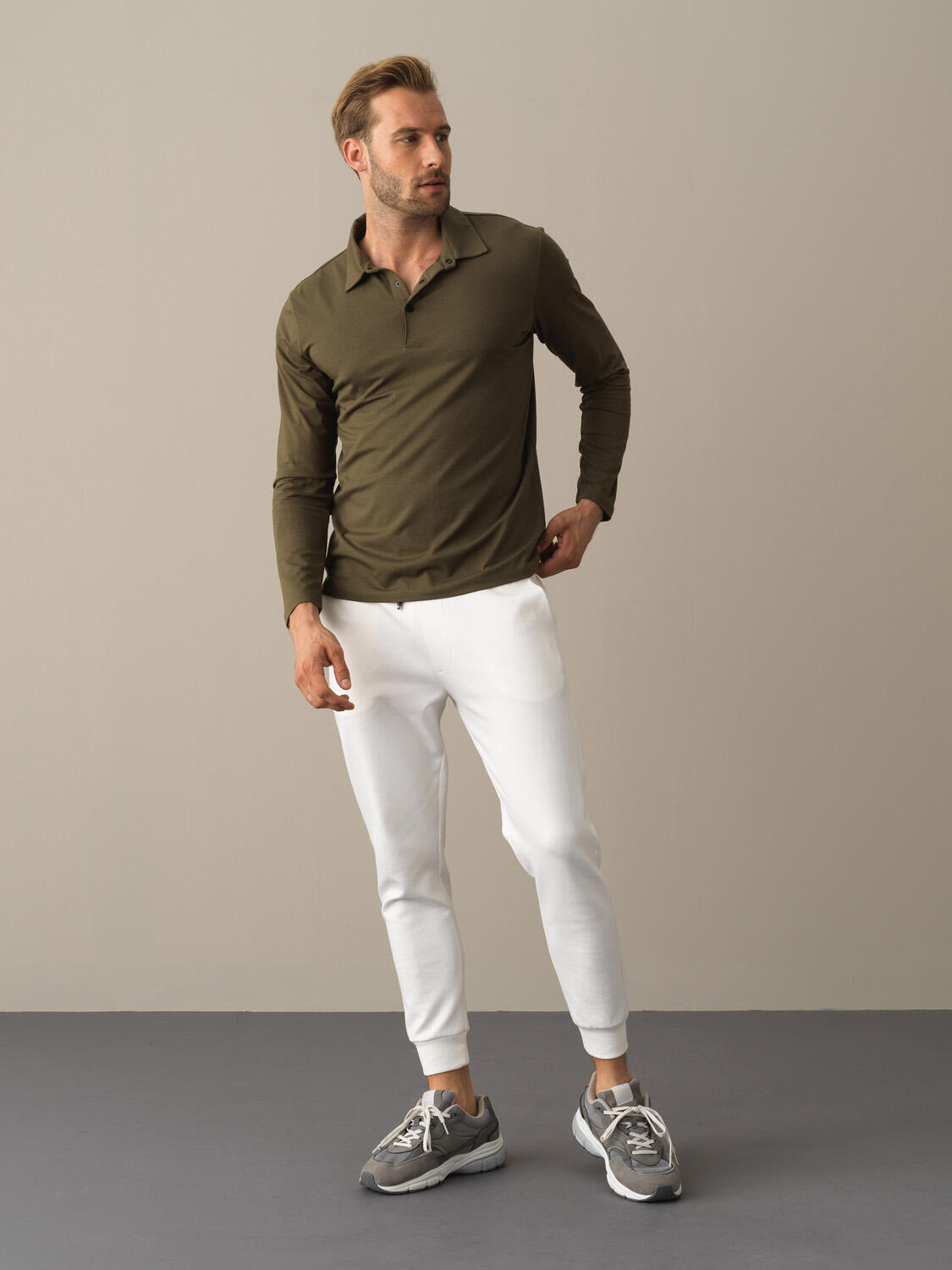 Model Dimensions: Height 190 cm / Chest 95 / Waist 79 / Hip 95 Size on Mannequin: 32/M