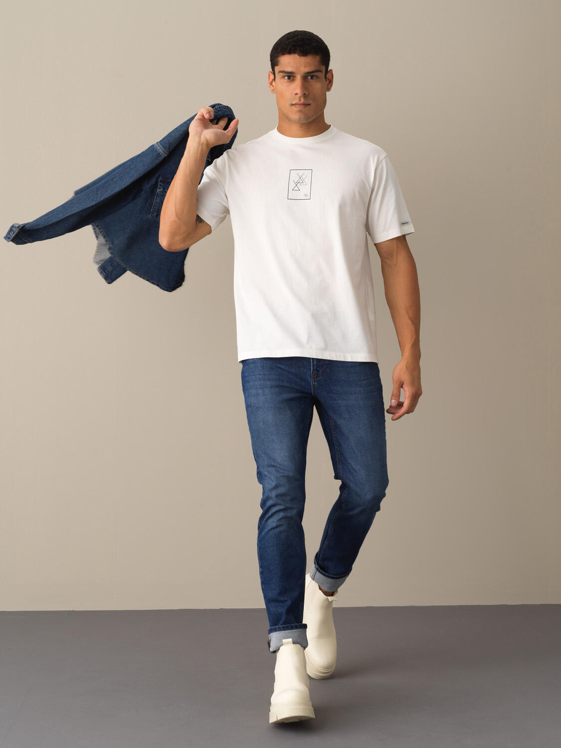 White Cotton Textured Regular Fit T-Shirt - Xint