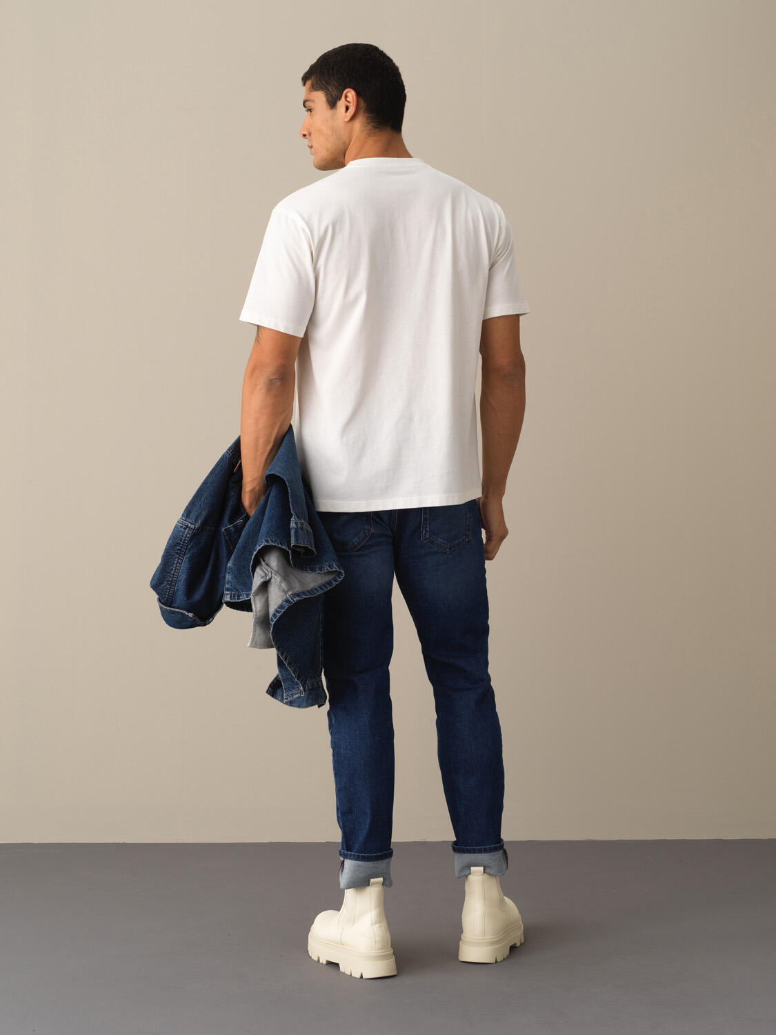 White Luxury Mercerized Textured Regular Fit T-Shirt - Xint