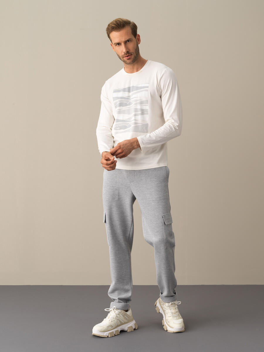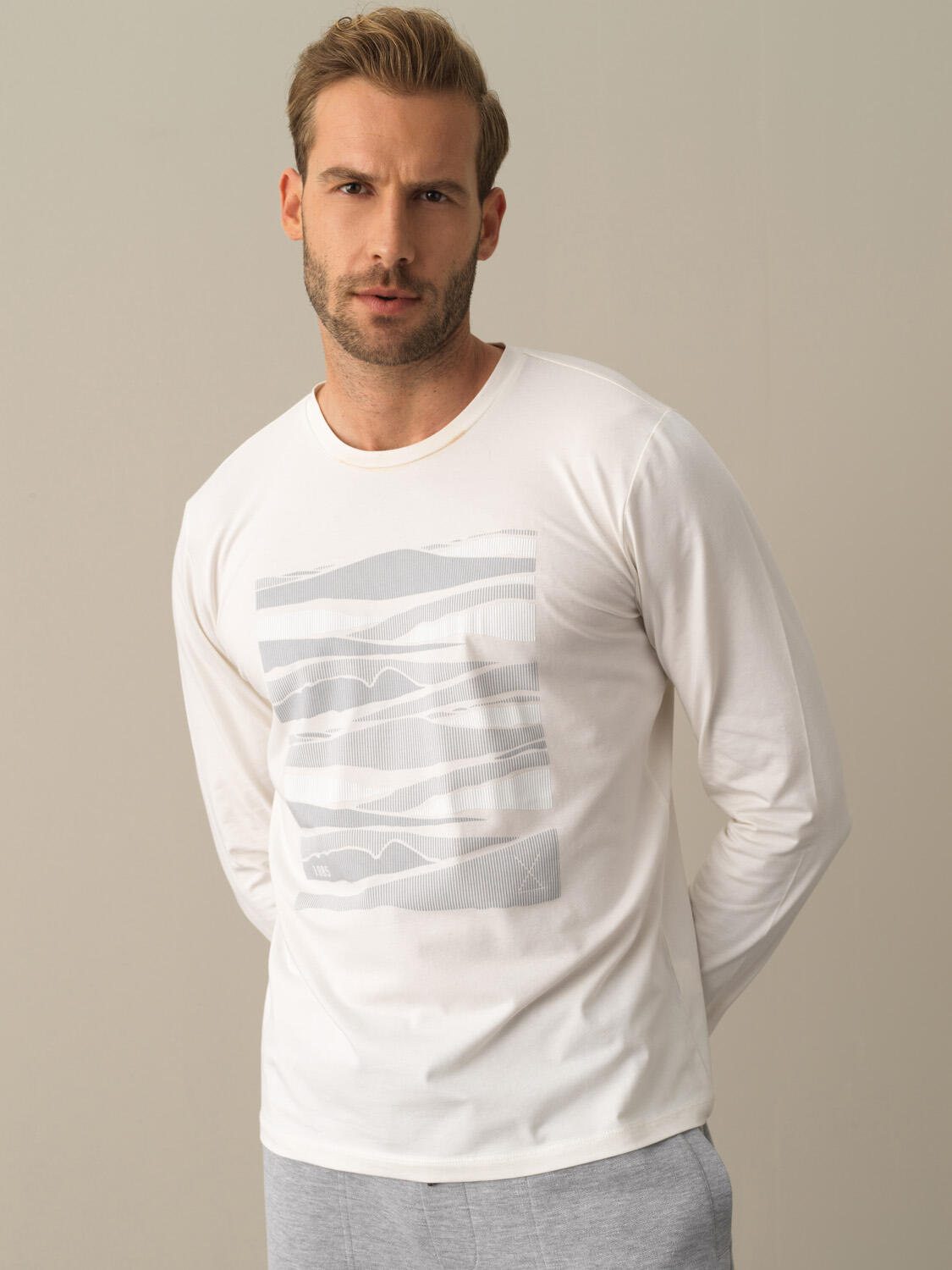 Ecru Flexible Textured Regular Fit Long Sleeve T-Shirt - Xint