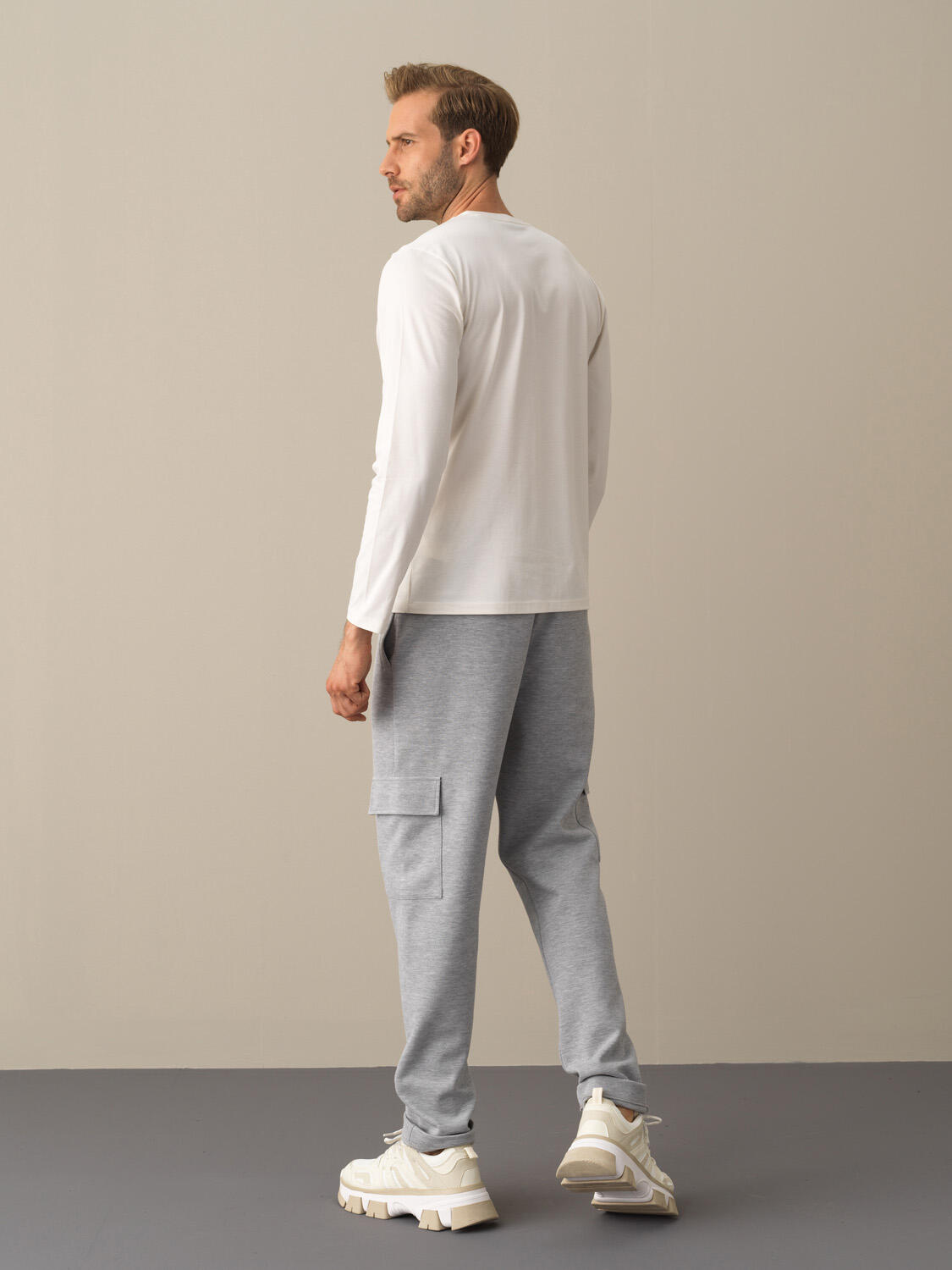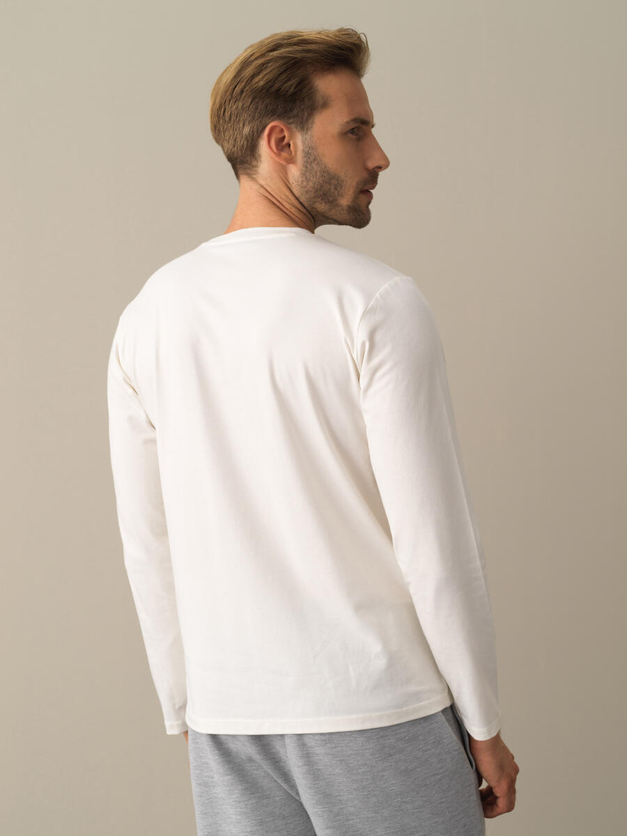 White Modal Textured Slim Fit Long Sleeve T-Shirt - Xint
