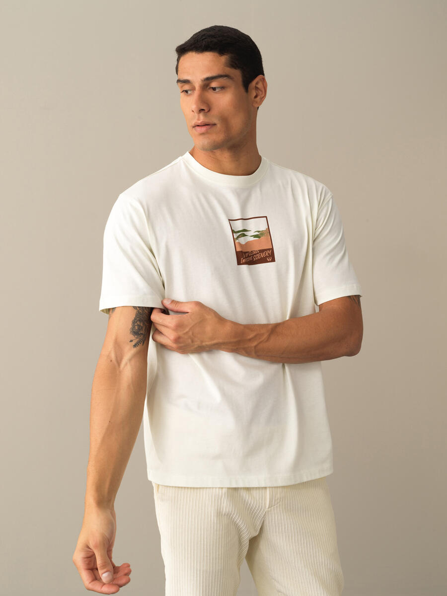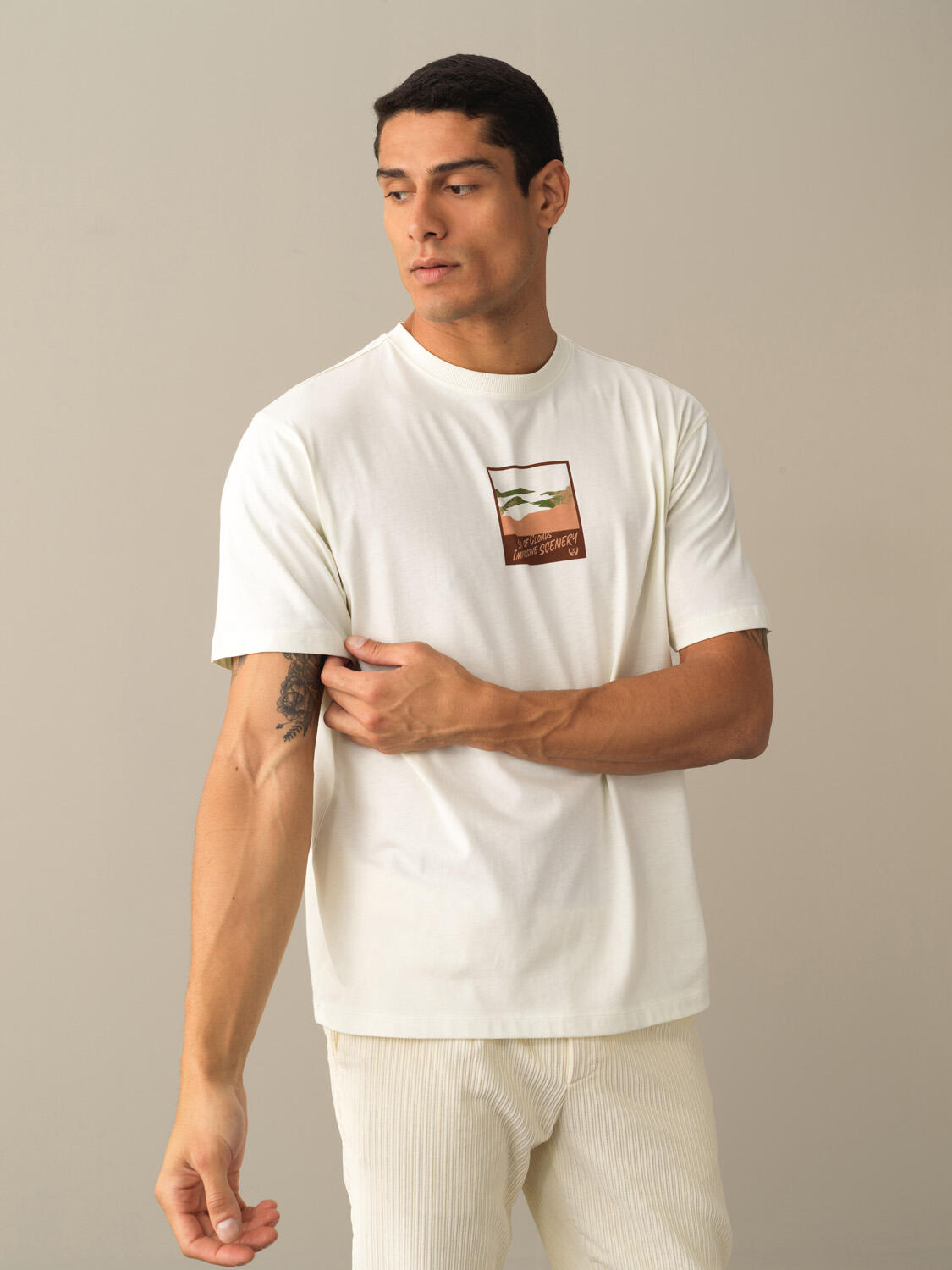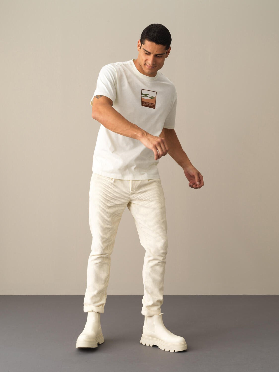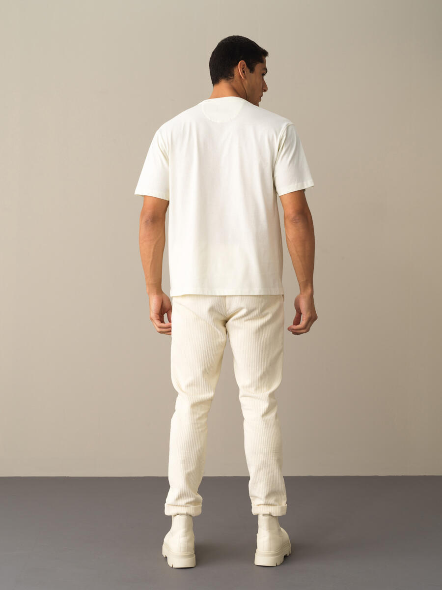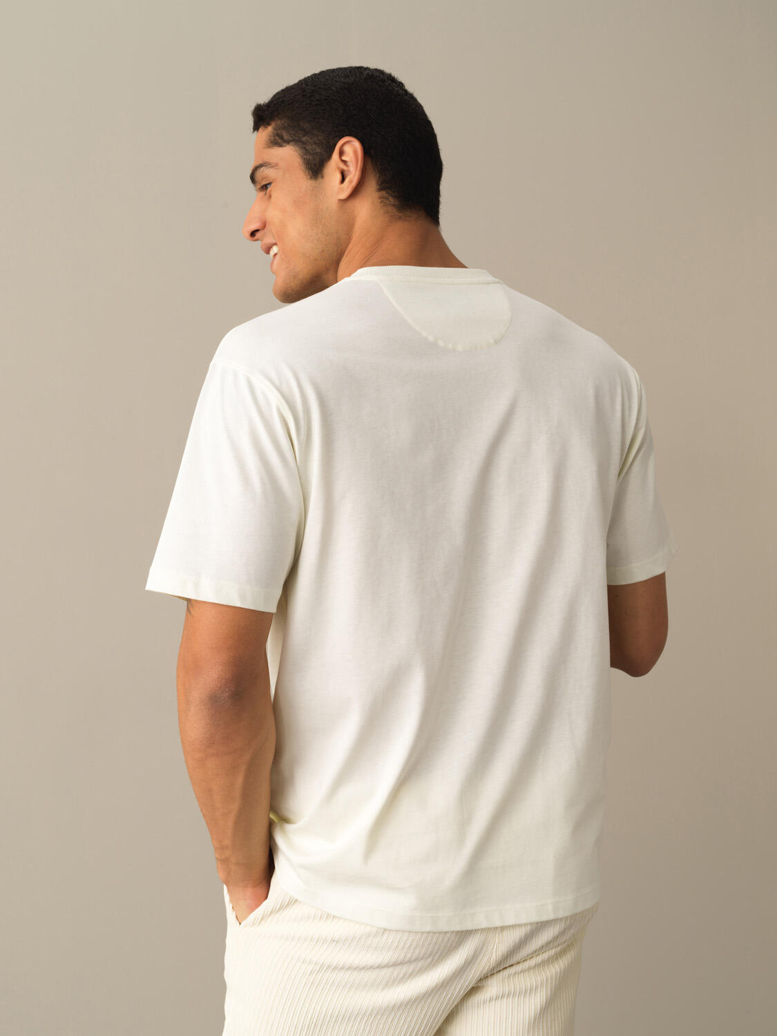 Ecru Cotton Textured Regular Fit T-Shirt - Xint