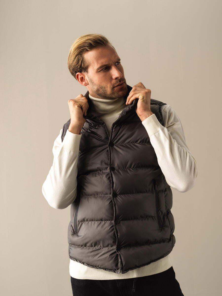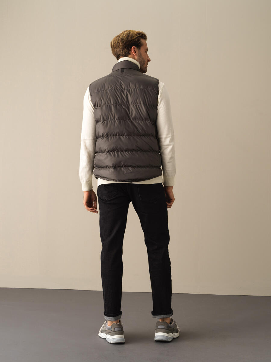 Stand Collar Regular Fit Snap Button Puffer Vest