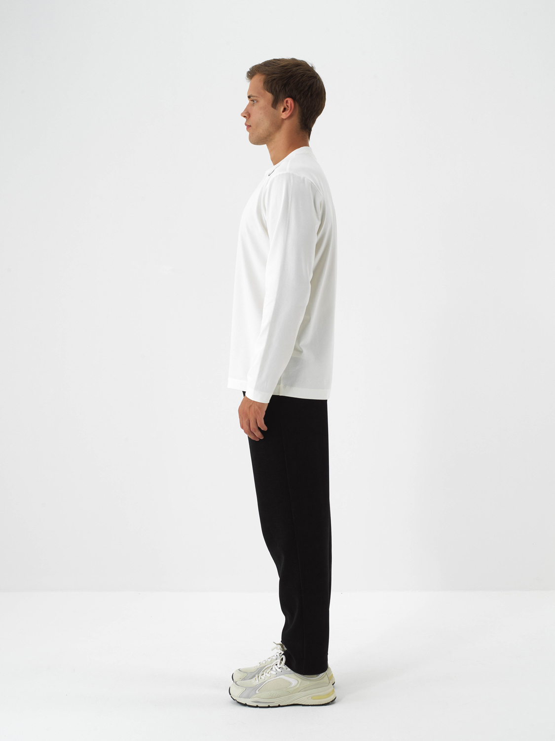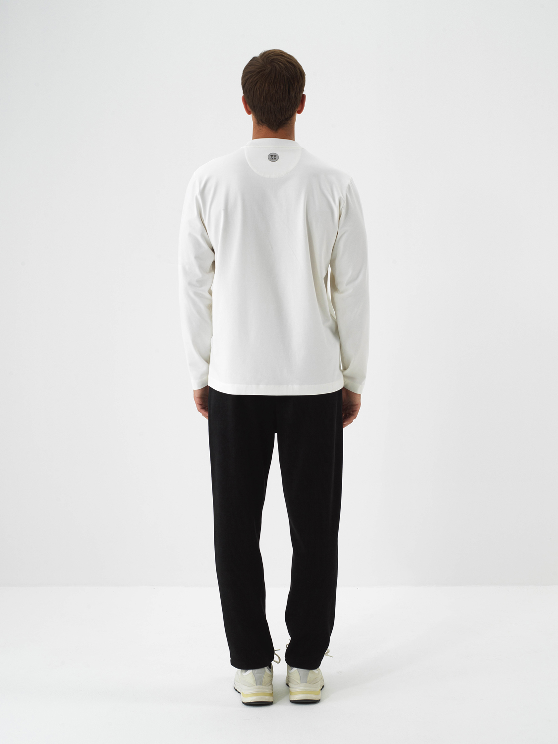 White Modal Textured Slim Fit Long Sleeve T-Shirt - Xint