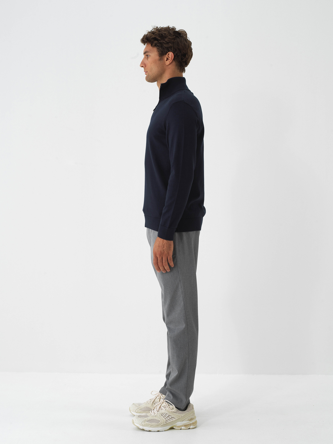 Navy Blue Soft Texture Regular Fit Sweater - Xint