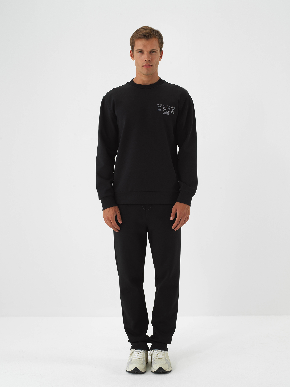 Black Cotton Textured Regular Fit Sweatshirt - Xint