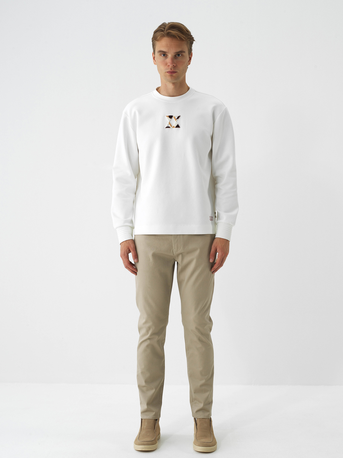 Ecru Soft Fleece Surface Slim Fit Sweatshirt - Xint