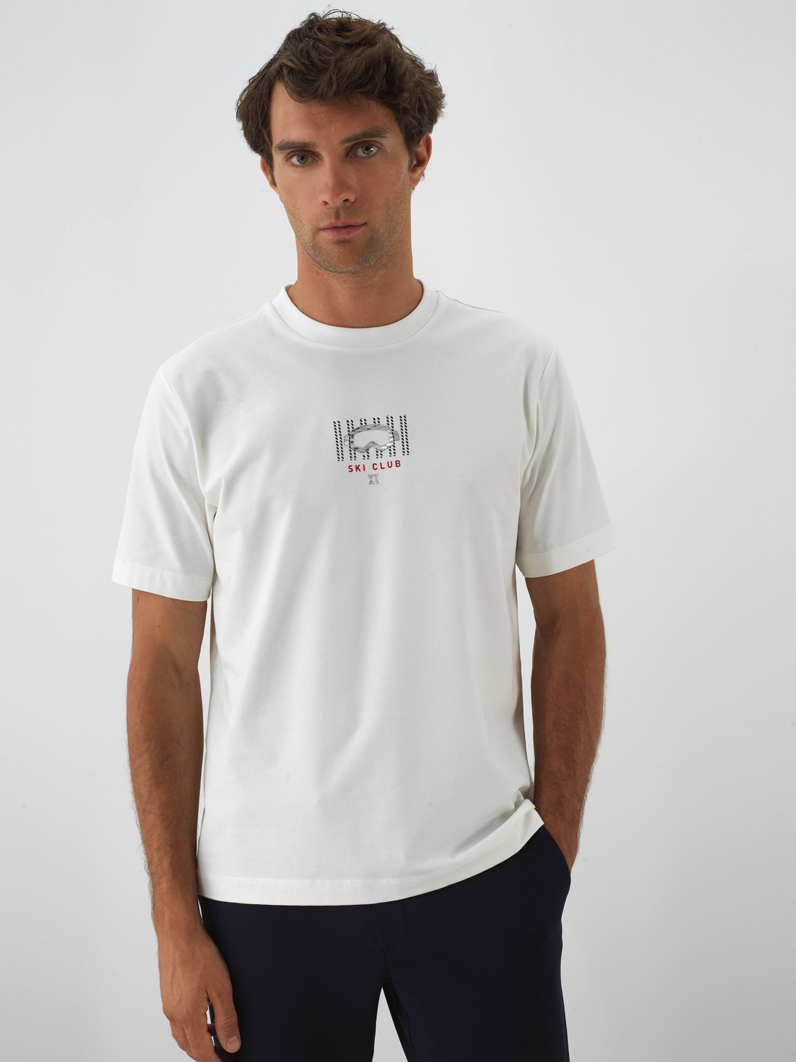 White Luxury Mercerized Textured Regular Fit T-Shirt - Xint