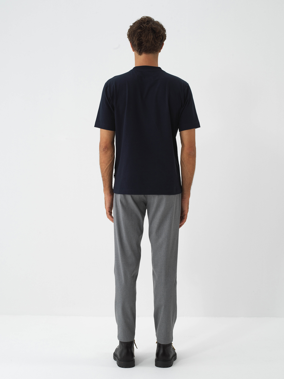 Navy Blue Luxury Mercerized Textured Regular Fit T-Shirt - Xint