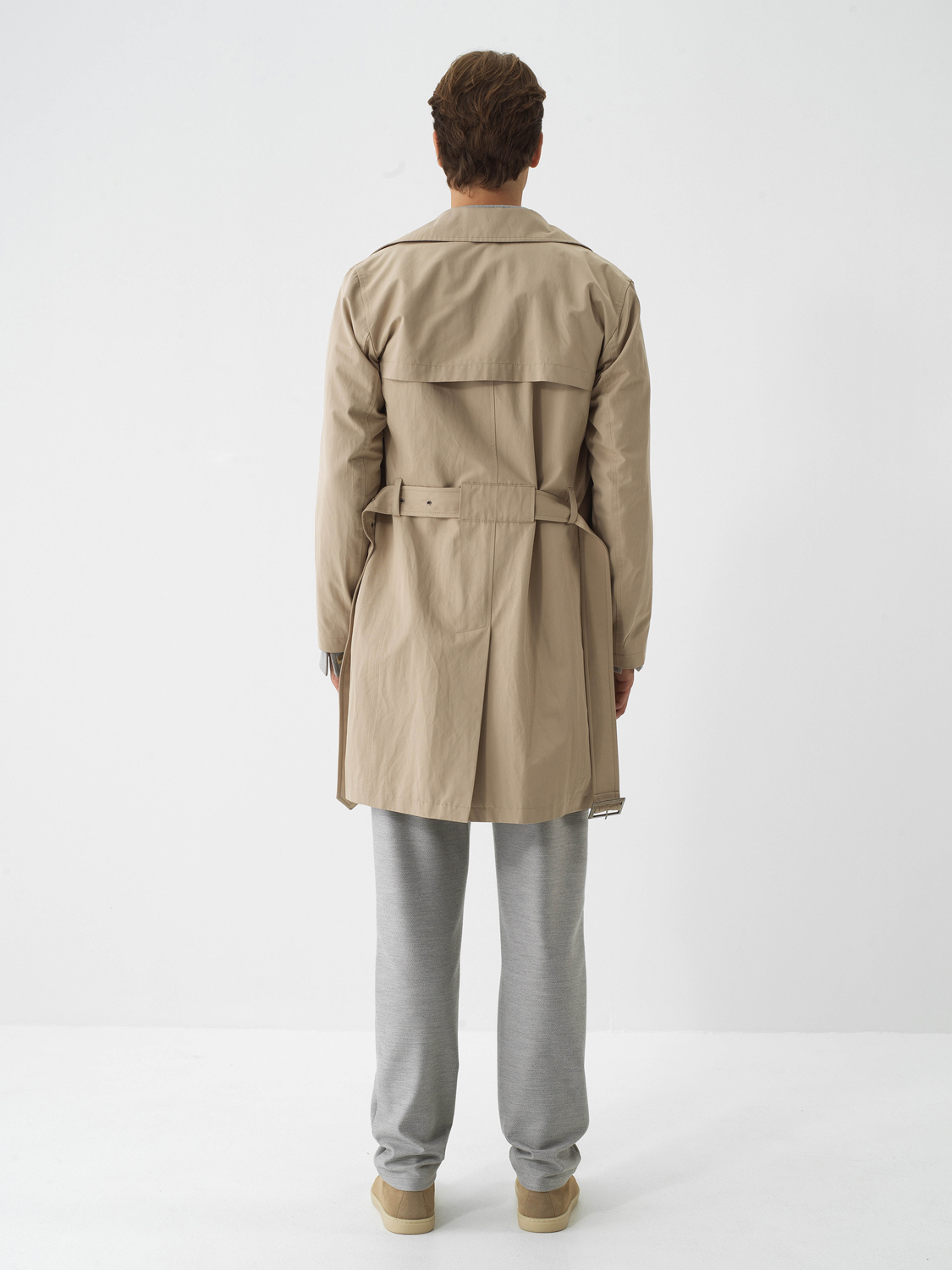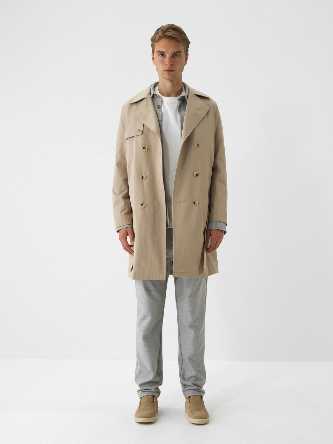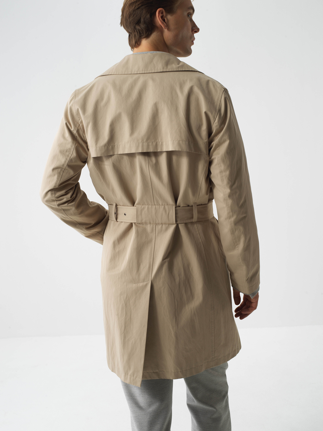 Beige Cotton Textured Regular Fit Trench Coat - Xint