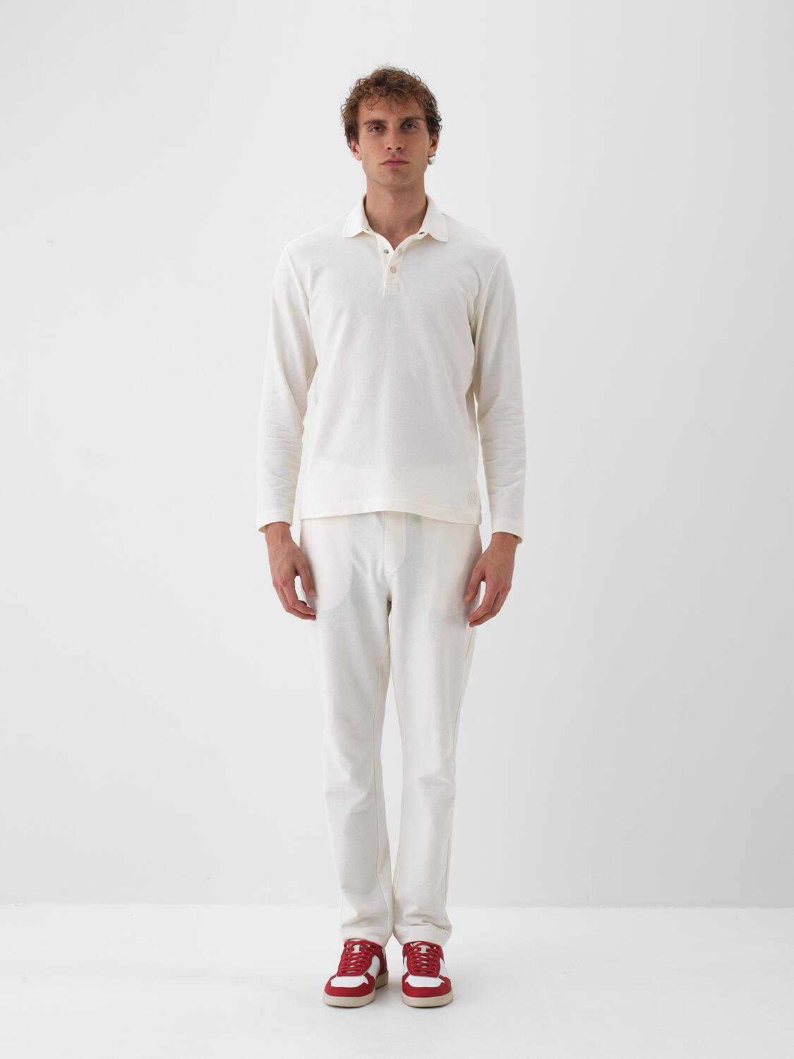 White Modal Textured Slim Fit Long Sleeve T-Shirt - Xint