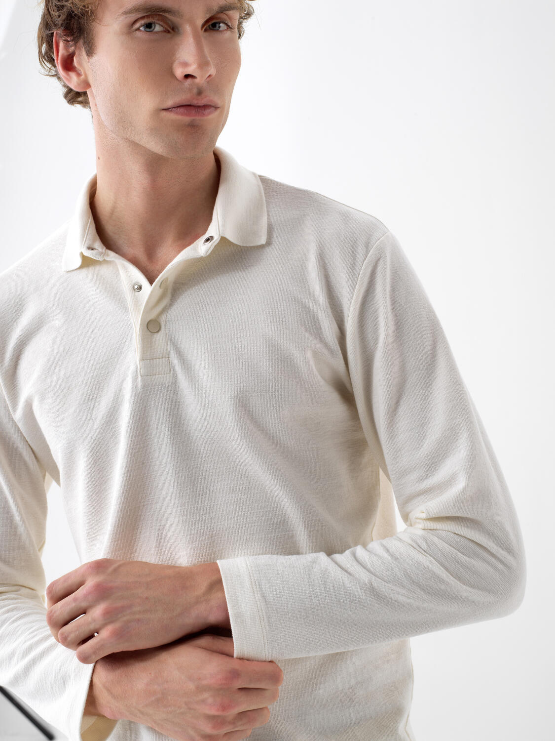 Ecru Flexible Textured Regular Fit Long Sleeve T-Shirt - Xint