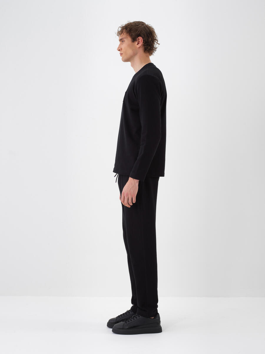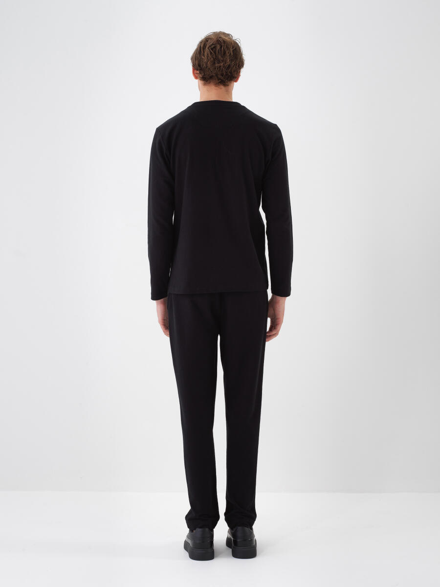 Black Modal Textured Slim Fit Long Sleeve T-Shirt - Xint