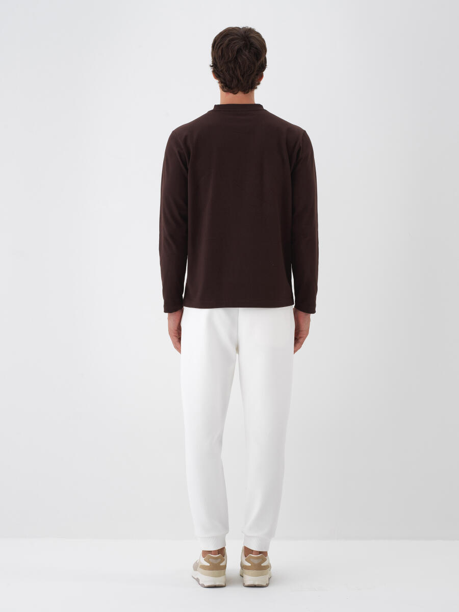 Ecru Flexible Textured Regular Fit Long Sleeve T-Shirt - Xint
