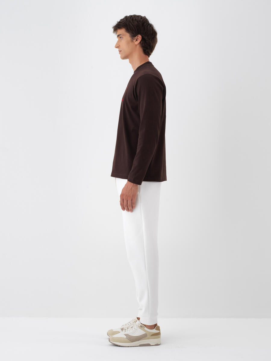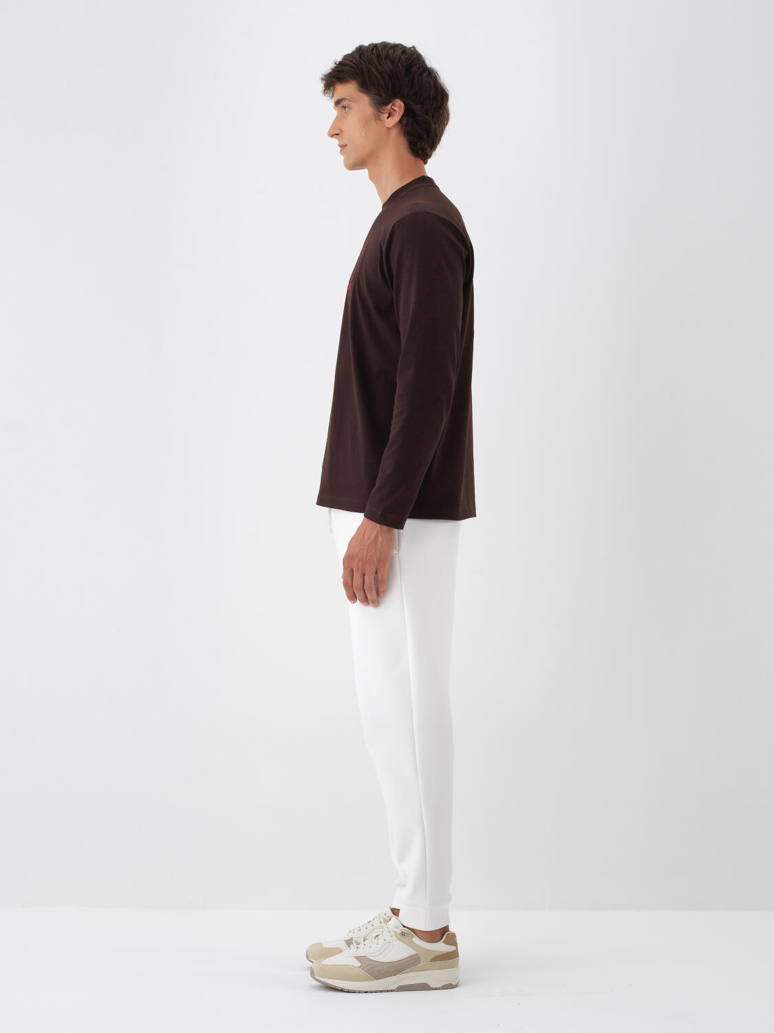 White Modal Textured Slim Fit Long Sleeve T-Shirt