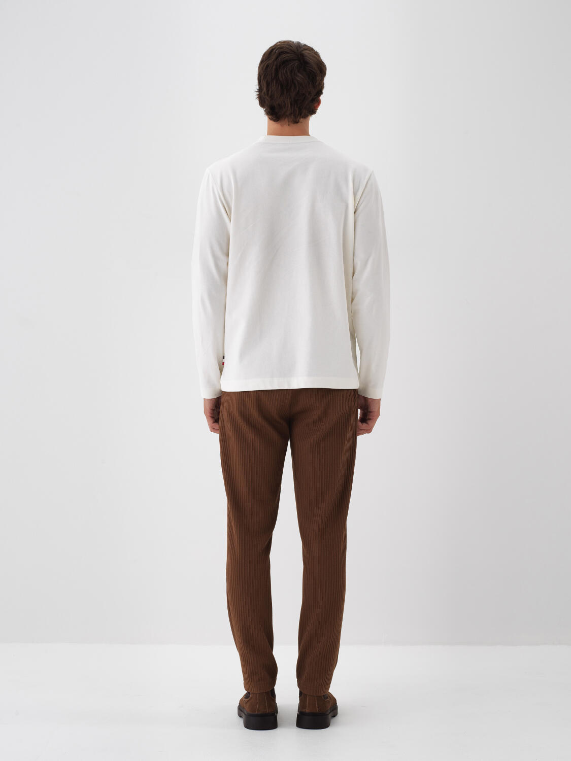 Ecru Flexible Textured Regular Fit Long Sleeve T-Shirt - Xint