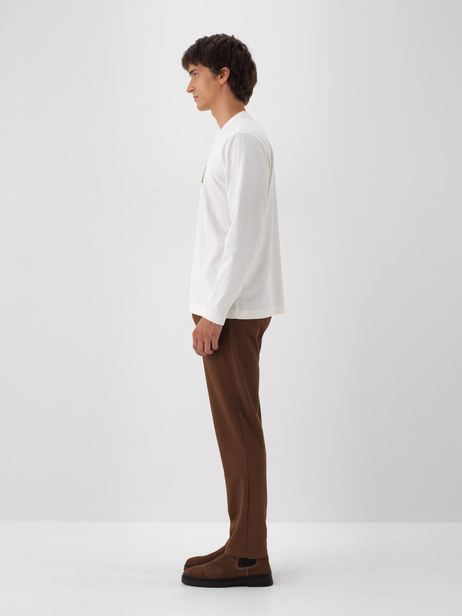 White Modal Textured Slim Fit Long Sleeve T-Shirt