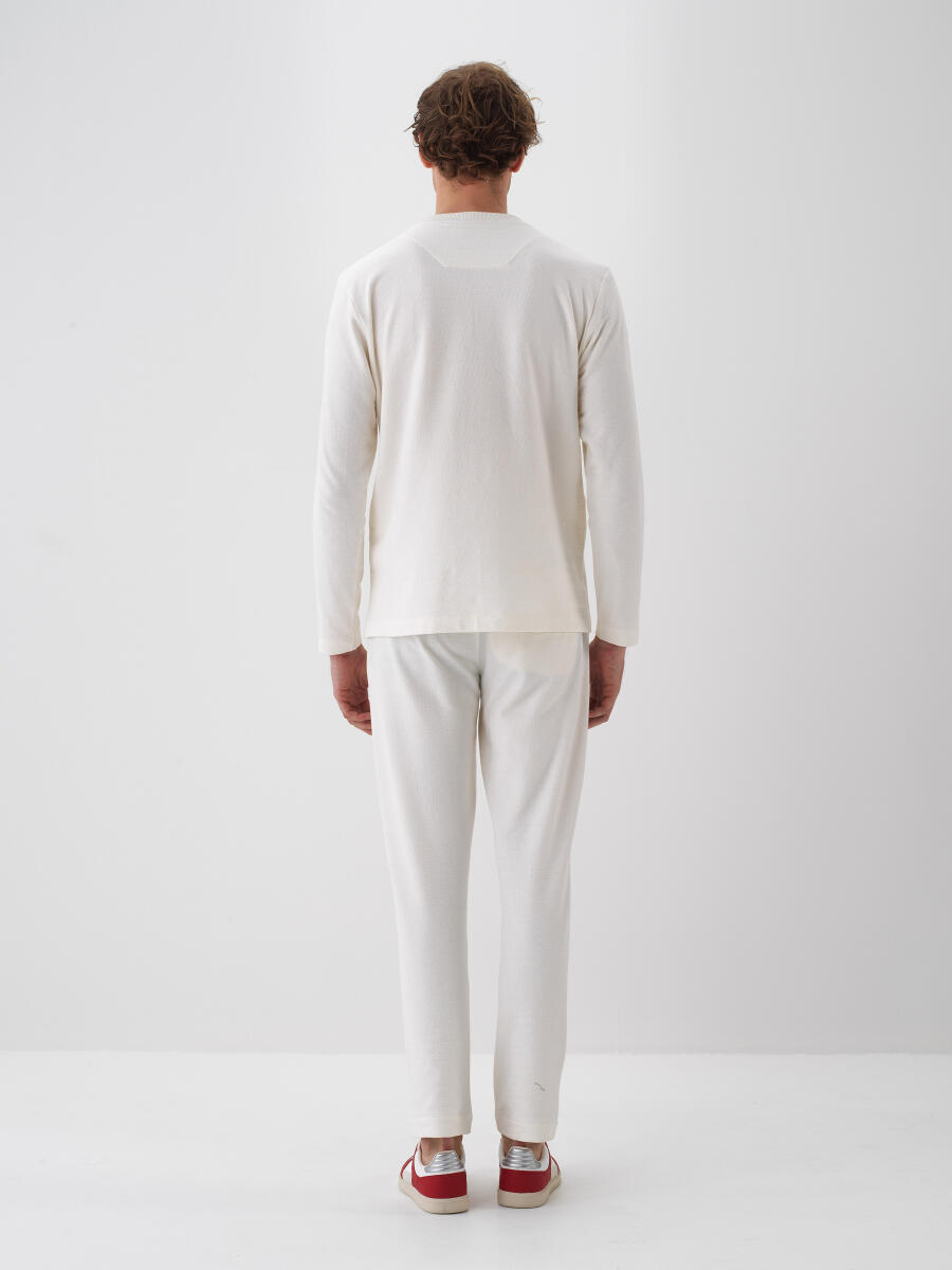 White Modal Textured Slim Fit Long Sleeve T-Shirt - Xint