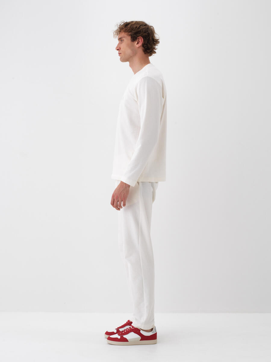 White Modal Textured Slim Fit Long Sleeve T-Shirt - Xint