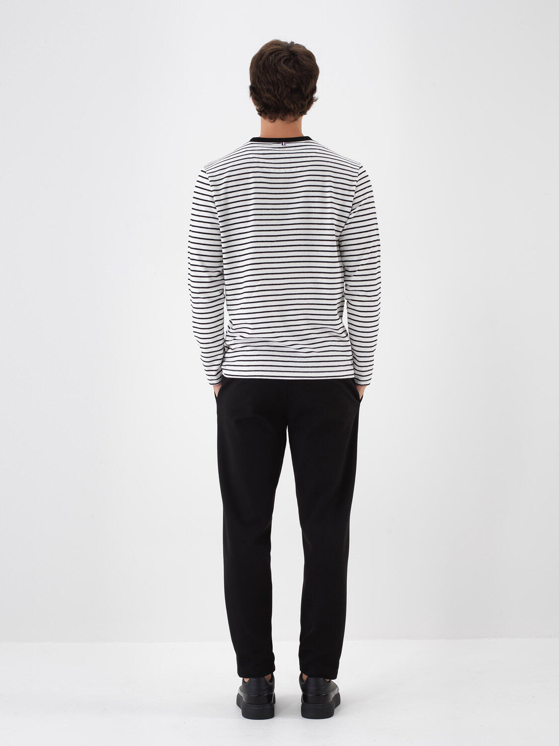 White Modal Textured Slim Fit Long Sleeve T-Shirt - Xint