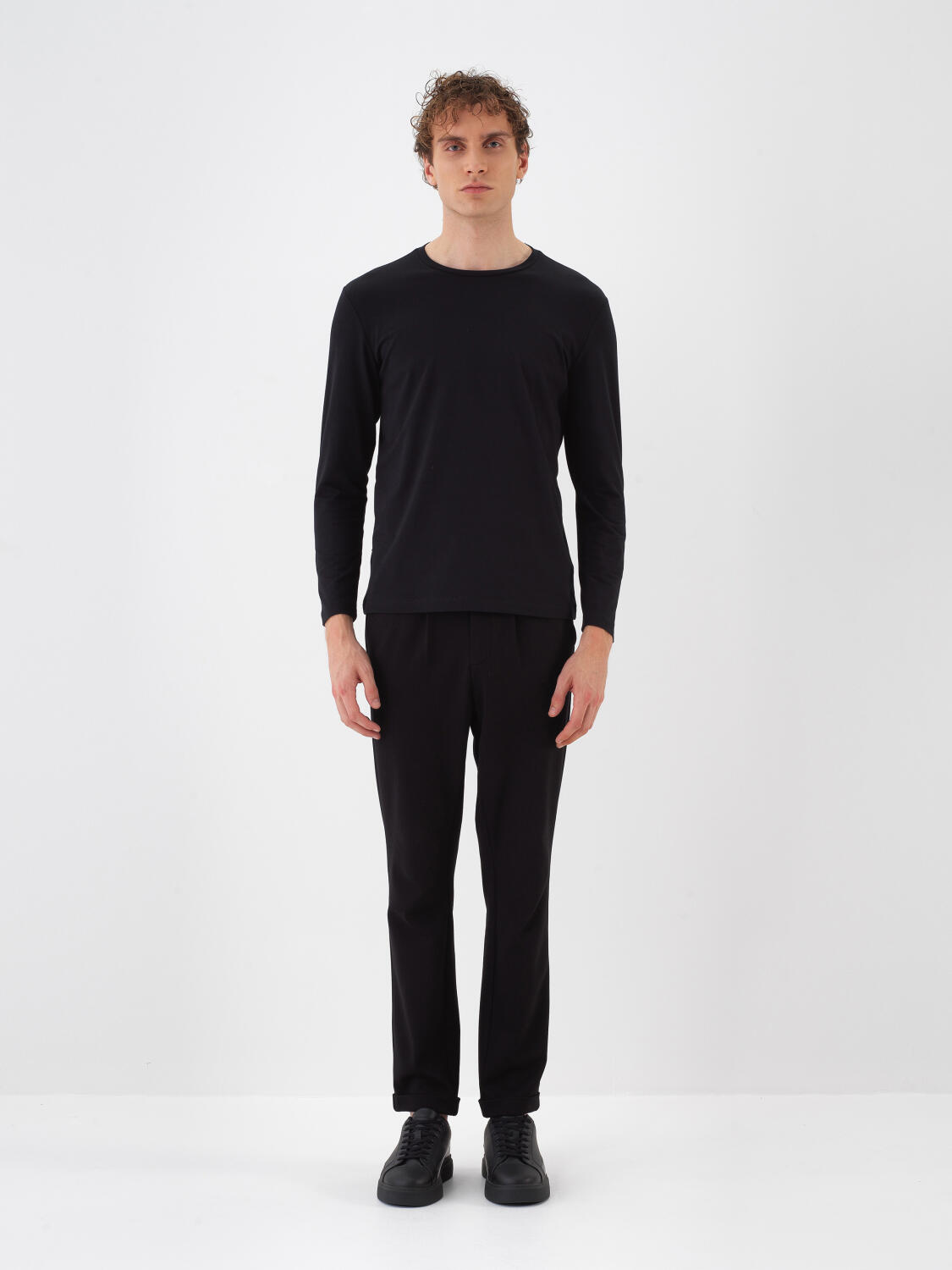 Black Modal Textured Slim Fit Long Sleeve T-Shirt - Xint