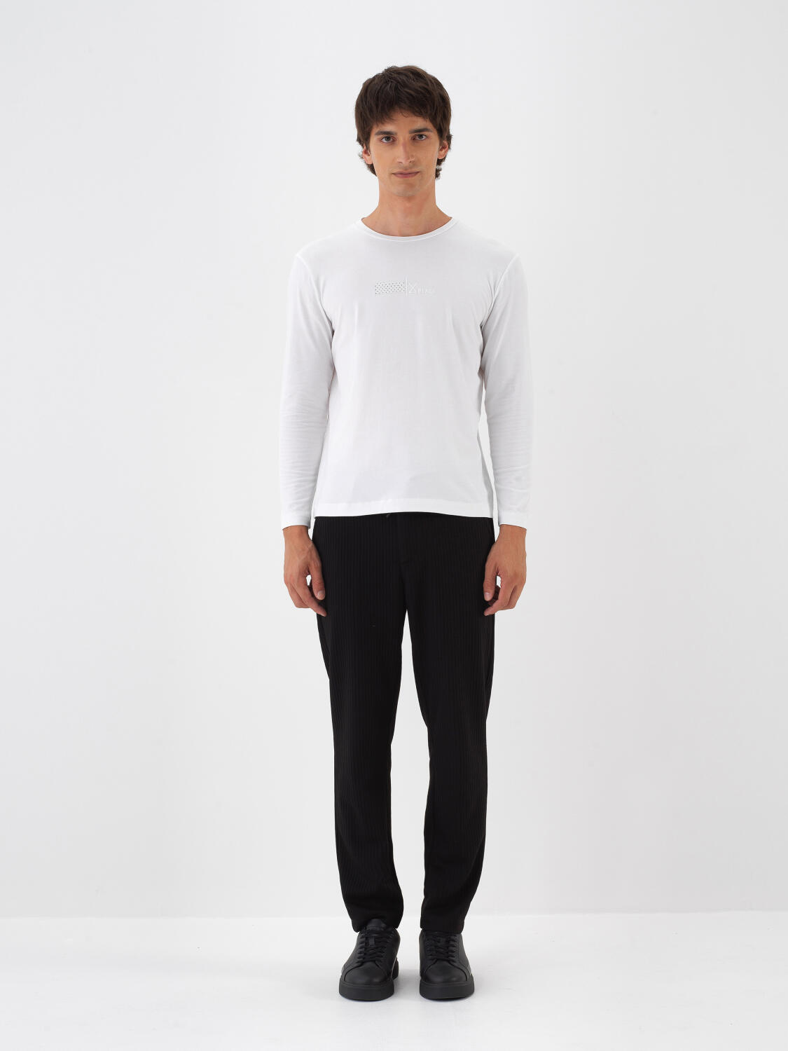 White Modal Textured Slim Fit Long Sleeve T-Shirt - Xint