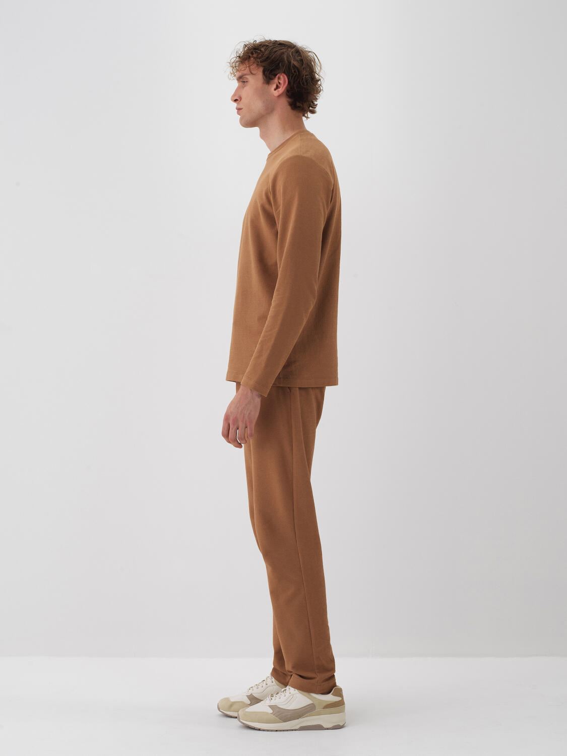 Ecru Flexible Textured Regular Fit Long Sleeve T-Shirt - Xint