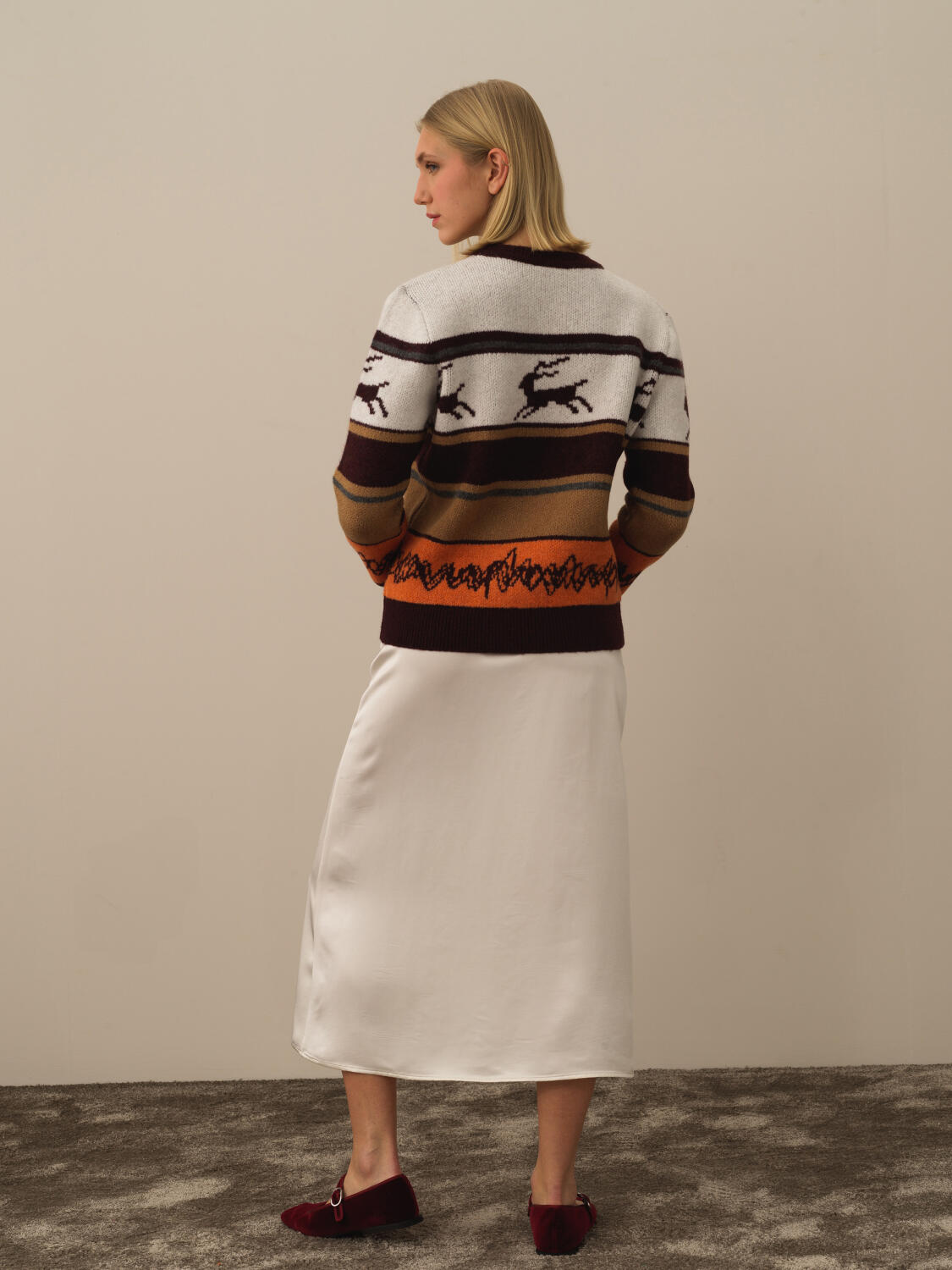 Ecru Natural Wool Textured Regular Fit Sweater - Xint