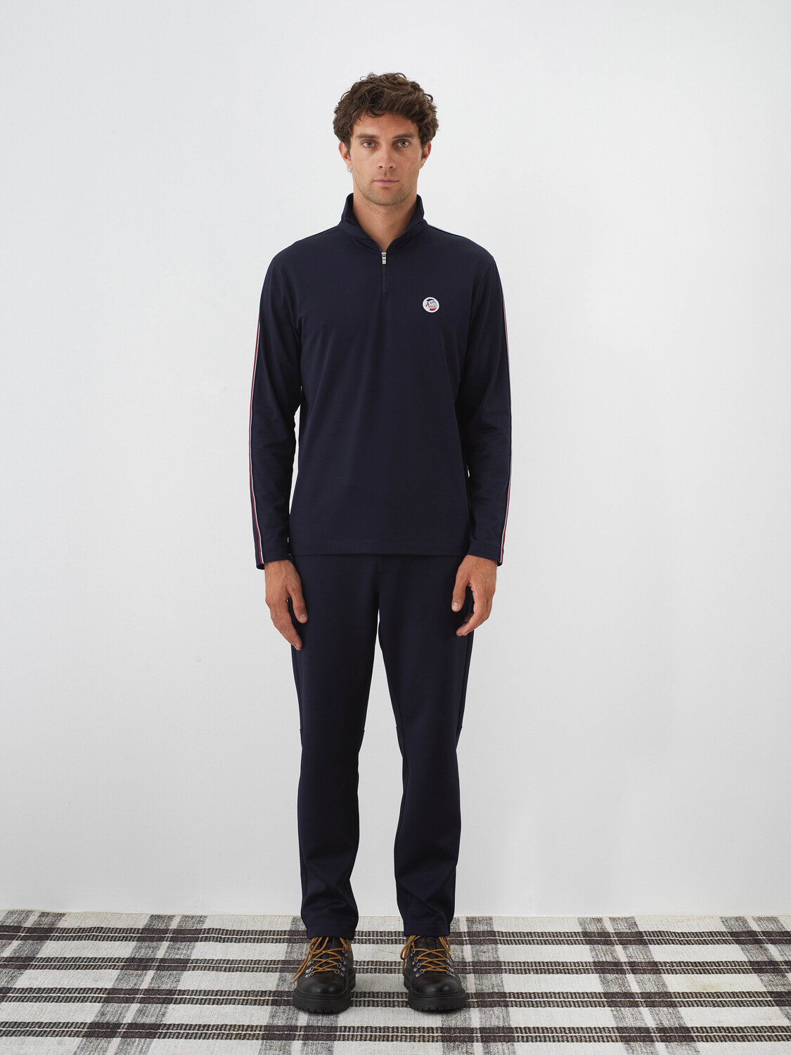 Navy Blue Cotton Textured Slim Fit Sweat Trousers