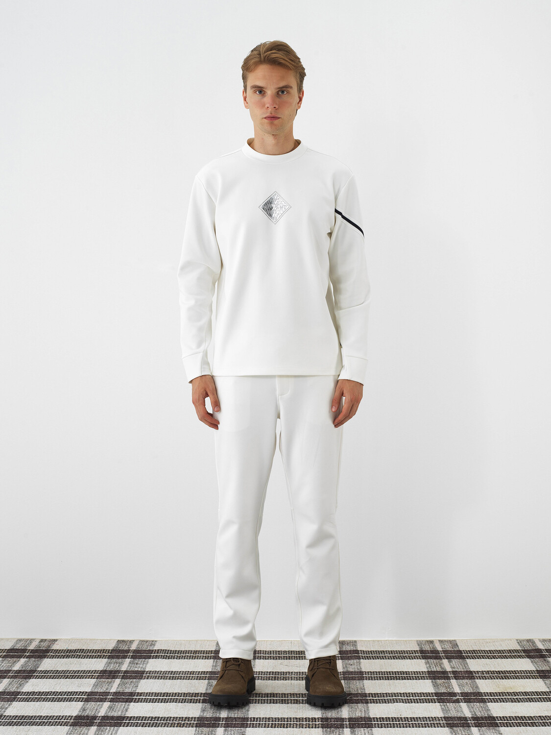 Ecru Flexible Textured Regular Fit Sweatshirt