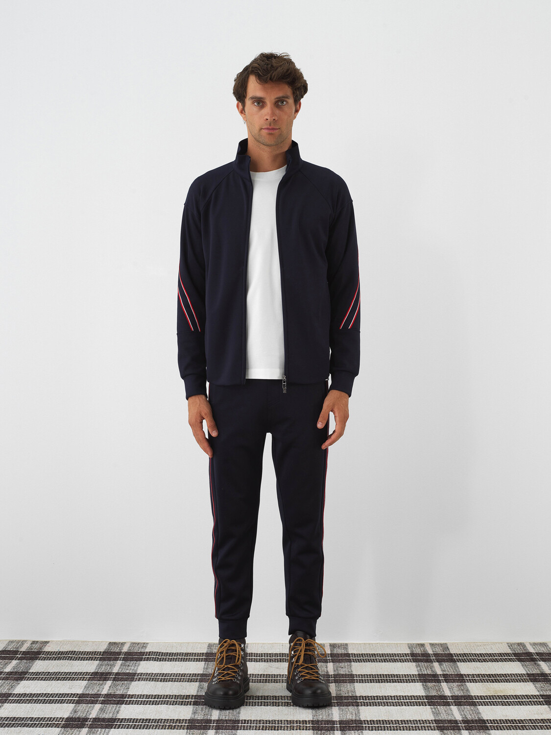 Navy Blue Flexible Textured Regular Fit Sweat Trousers