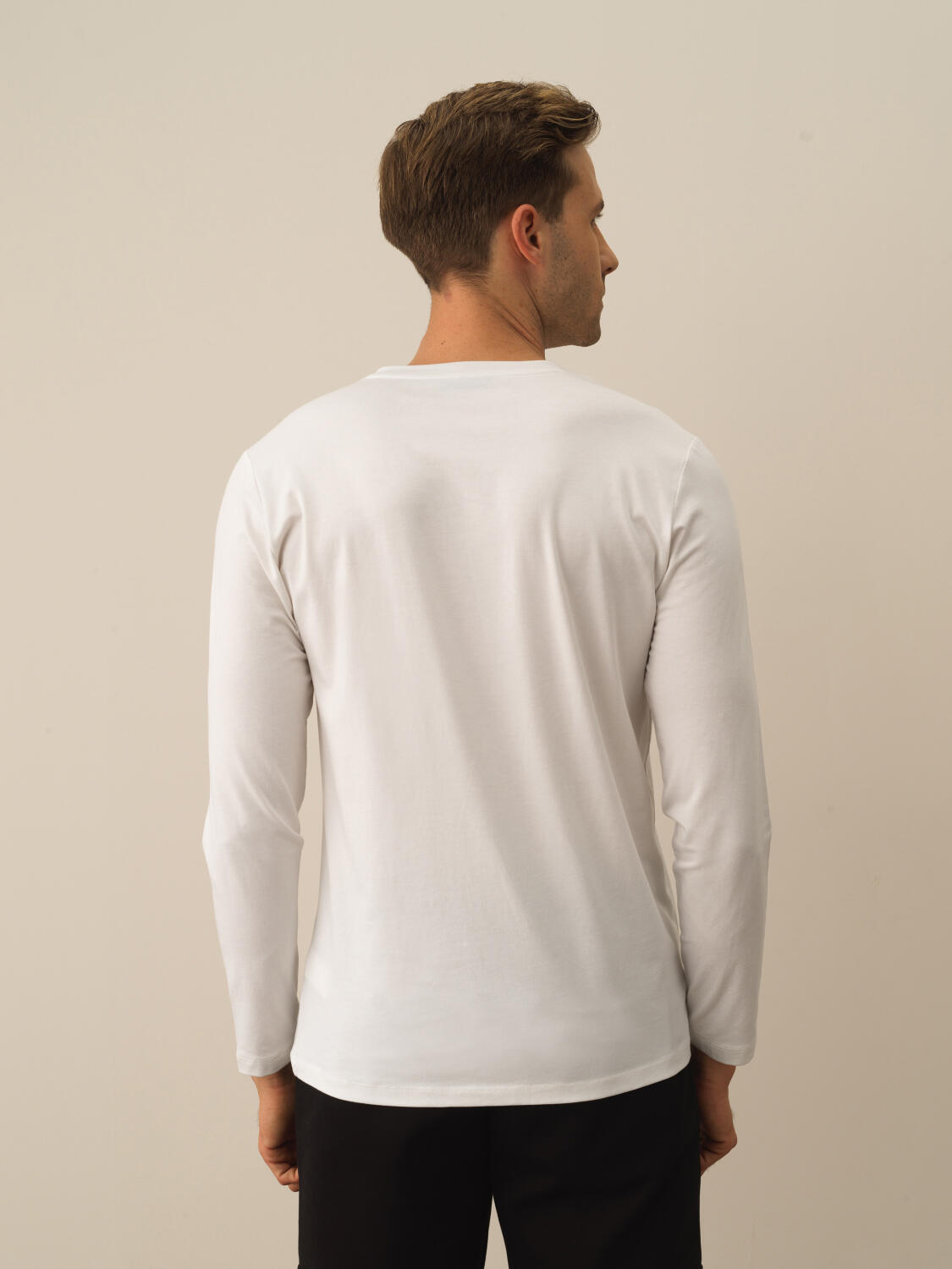 White Modal Textured Slim Fit Long Sleeve T-Shirt - Xint