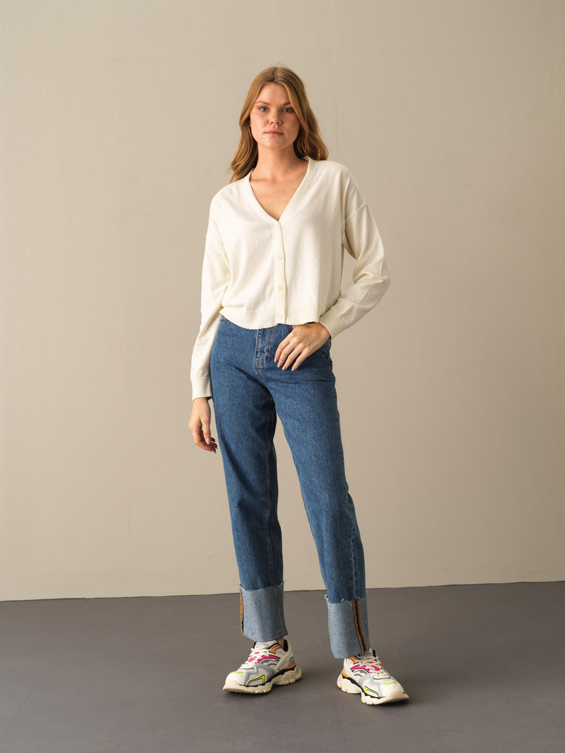 100% Cotton Slim Fit Buttoned Basic Cardigan